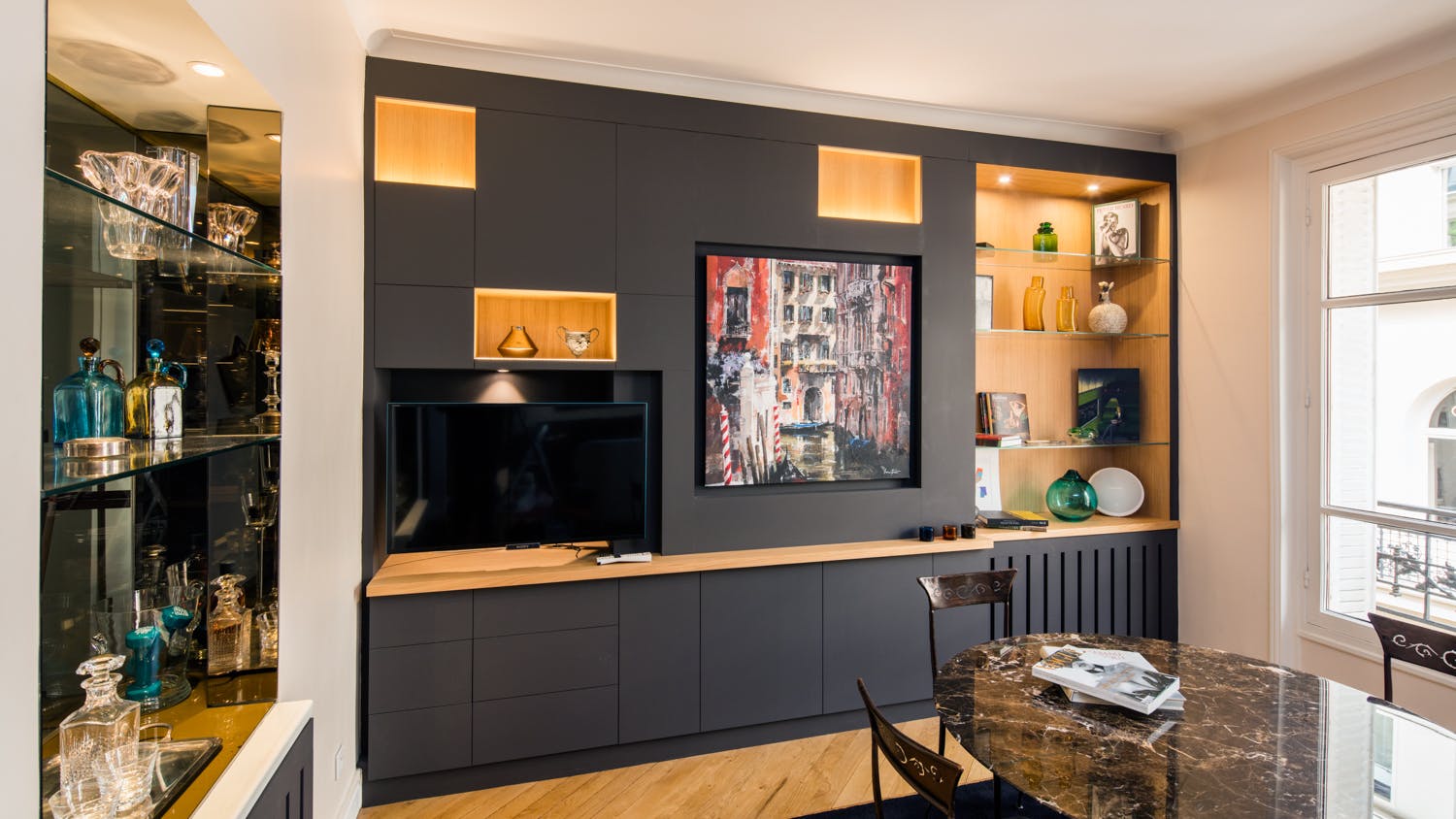Une niche dans une bibliothèque sur-mesure permet de stocker des accessoires ou des livres afin de gagner de la place en rangements. Son bénéfice supplémentaire est de mettre en valeurs vos objets déco comme une sculpture, un joli vase, un tableau. Elle expose vos plus beaux bibelots et les rend visible de tous. Elle s’adapte à toutes les dimensions et formes d’objets, votre meuble de rangements sur-mesure devient une véritable vitrine décorative.