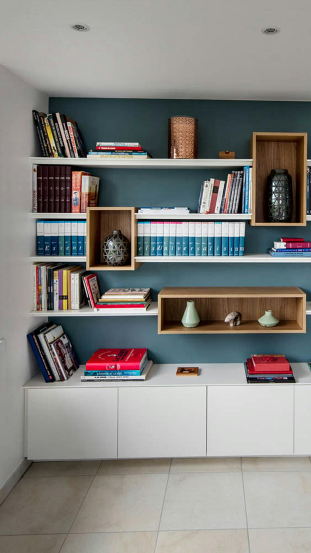 L’accumulation des niches, leurs dispositions, leurs formes verticales ou horizontales et leurs couleurs par rapport à l’ensemble de la structure du meuble crée un graphisme singulier qui donne du mouvement à vos murs. Par exemple un agencement plus ou moins déstructuré avec des casiers muraux suspendus rend un effet aérien et esthétique indéniable.
