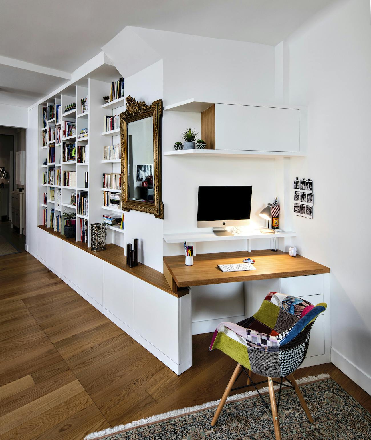 Que vous soyez télétravailleur régulier, indépendant ou que vous ayez besoin d’un bureau pour vos enfants, le sur-mesure vous permet de créer un espace unique, pensé dans les moindres détails : hauteur du plateau, largeur, disposition des rangements, intégration de prises électriques, niches, éclairages indirects, etc.