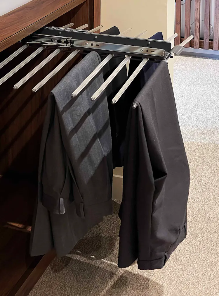 Selon vos besoins, il est possible d’intégrer soit : des doubles penderies, des tringles escamotables ou des systèmes coulissants