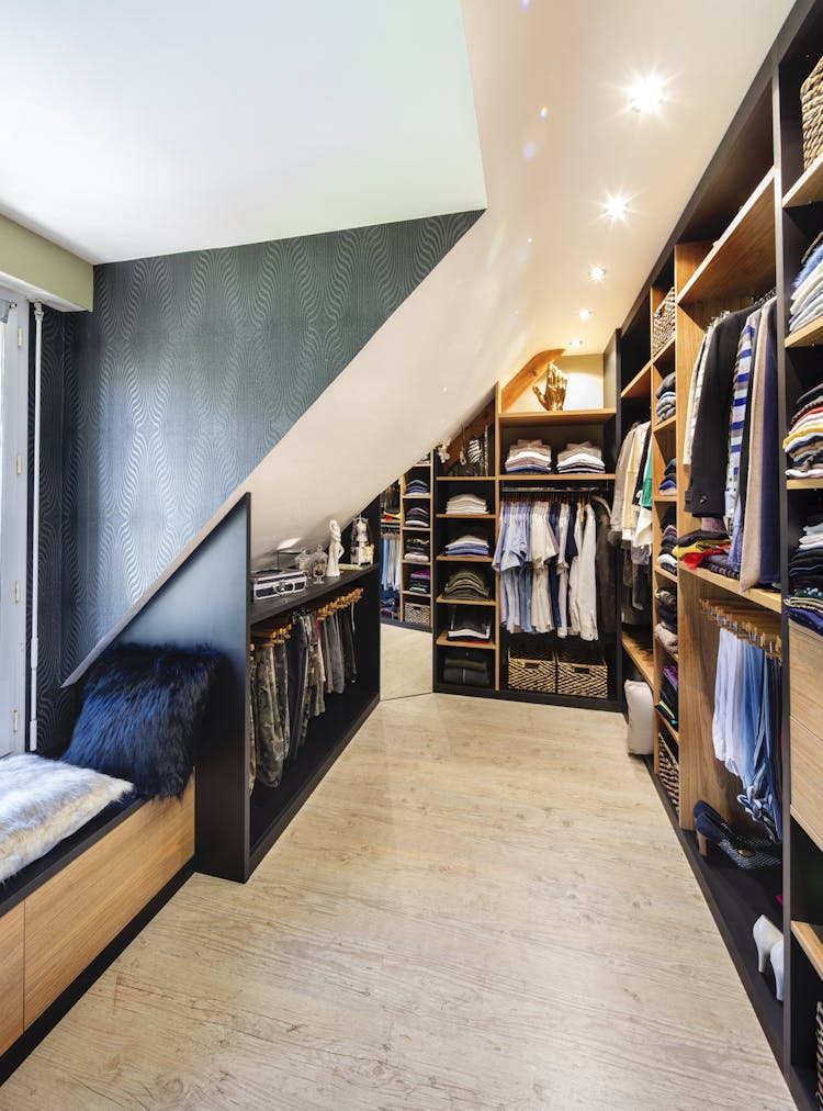 Dressing linéaire : le long d’un mur, avec des portes battantes ou coulissantes.