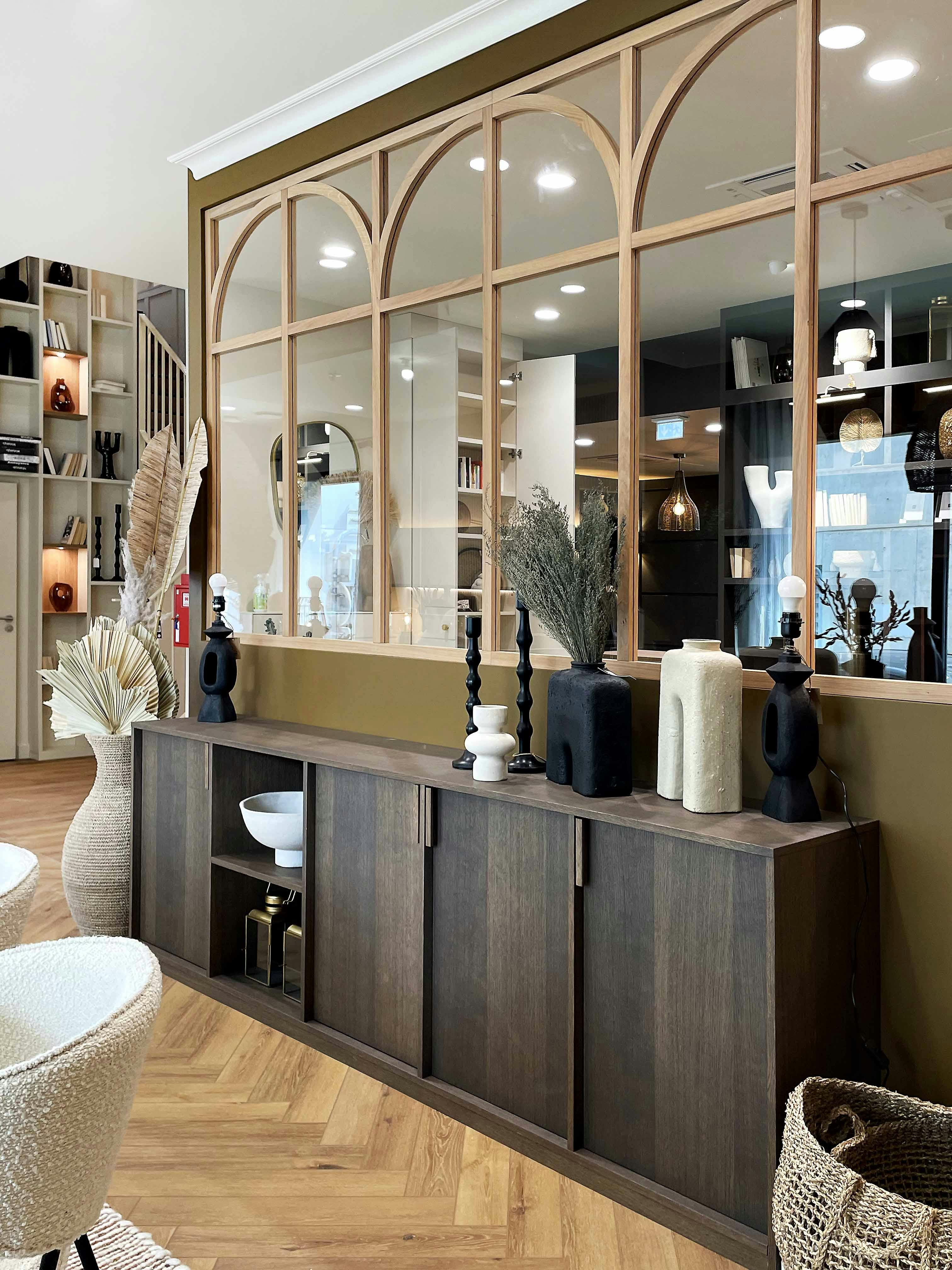 Les verrières en bois avec des formes arrondies incarnent la parfaite fusion entre tradition et modernité. Ces structures permettent de délimiter les espaces en laissant passer la lumière, tout en créant une ambiance chaleureuse grâce à la douceur des courbes.
