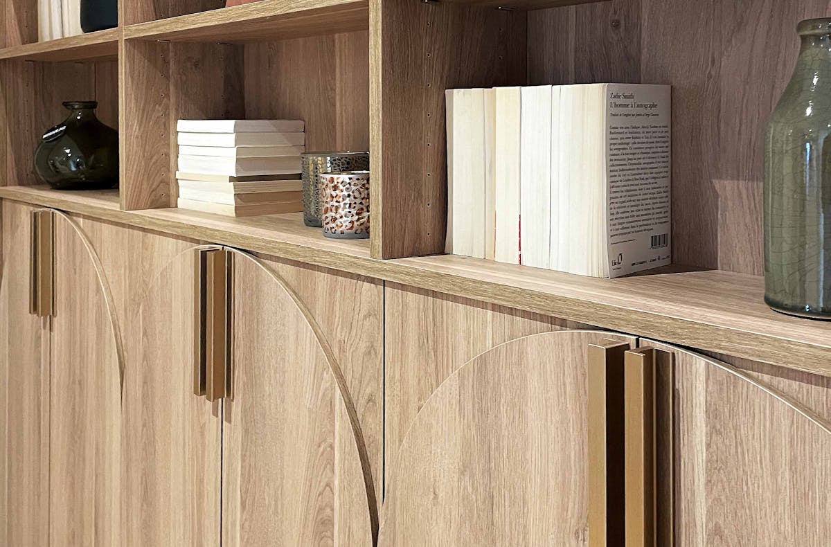 - Les arches : apportez une dimension artistique à vos aménagements avec des arches travaillées et des surépaisseurs qui donnent du relief à vos placards. Ces détails, lorsqu’ils sont créés en creusant le bois ou en ajoutant des couches, permettent de jouer avec les volumes pour un effet visuel saisissant.