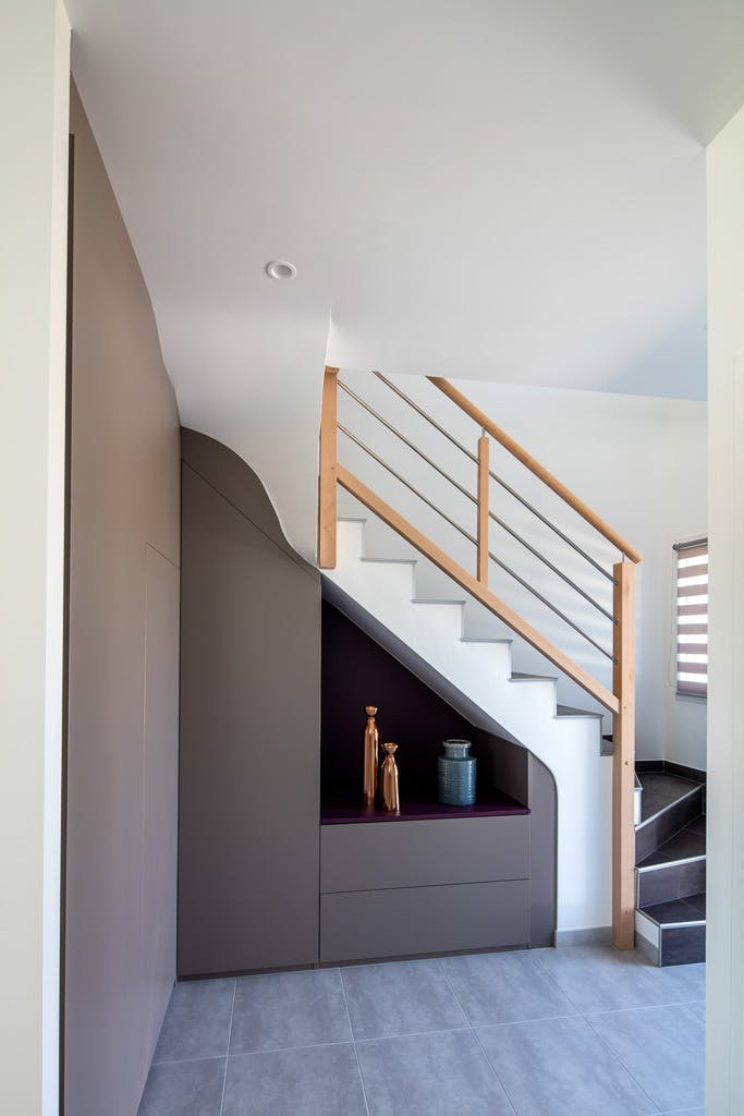 Pour créer un espace de rangement sous un escalier, il est important de choisir les bons matériaux. Les étagères et les tiroirs doivent être conçus pour supporter le poids des objets que vous souhaitez y stocker. Le choix des matériaux doit également tenir compte du style de décoration de votre maison ou appartement. Afin de bien accorder votre futur aménagement à votre intérieur il est important pour l’architecte d’intérieur en charge de votre projet d’assimiler parfaitement votre environnement.