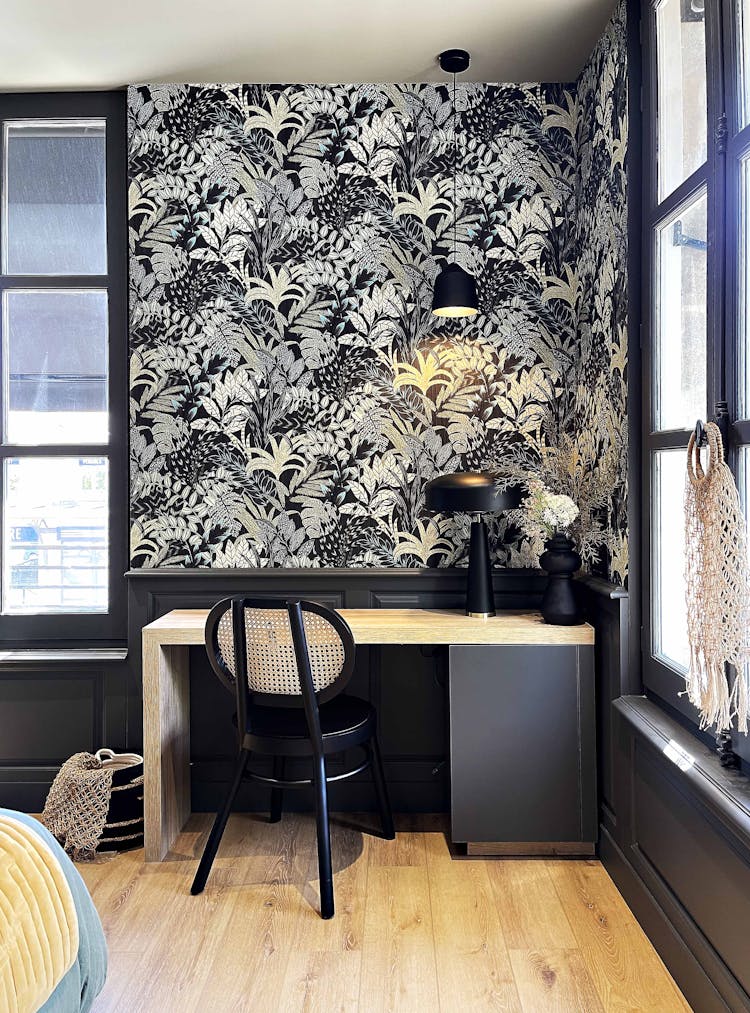 - Niches murales : placées au-dessus ou autour du bureau, elles optimisent le rangement tout en ajoutant une touche décorative.