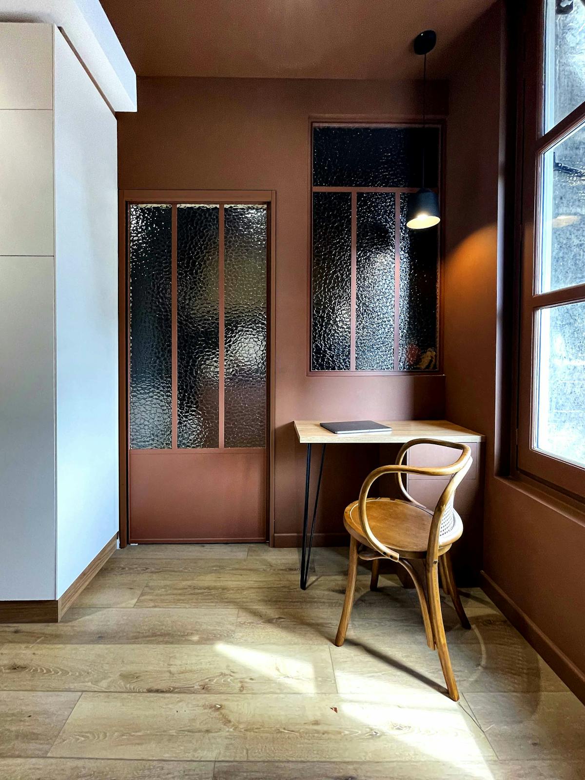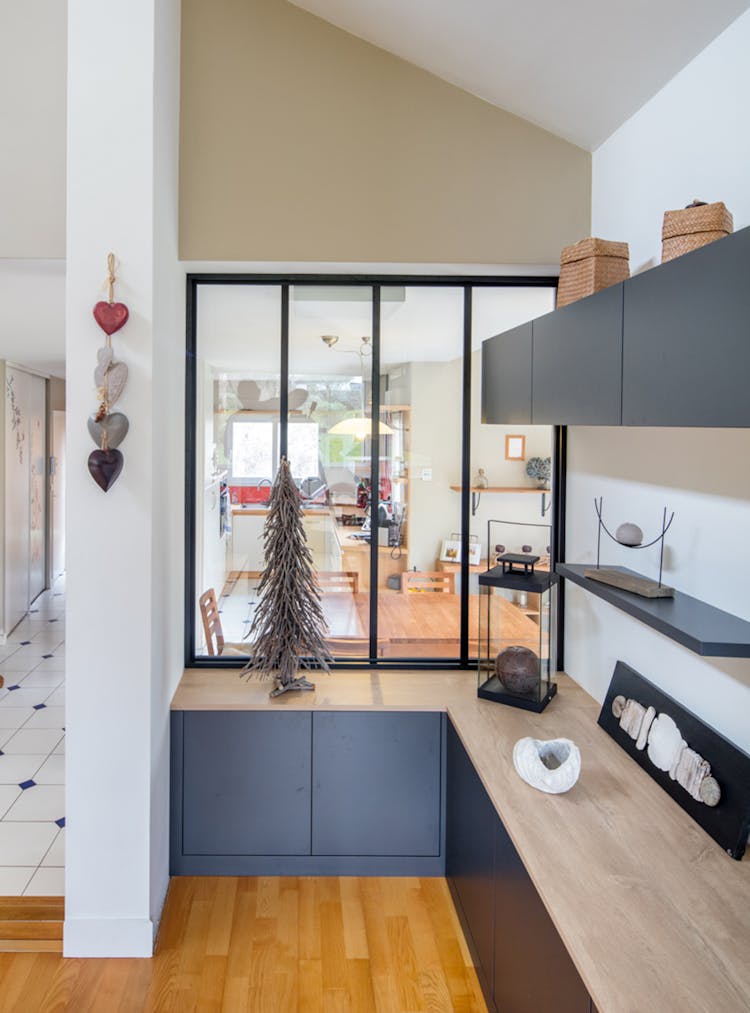 Aujourd’hui, la cloison atelier se décline en de nombreuses couleurs. Le noir classique laisse place à des nuances plus douces, comme le blanc ou le gris, voire des teintes pastel pour un effet plus chaleureux. Cela permet d’intégrer la verrière dans des ambiances plus contemporaines.