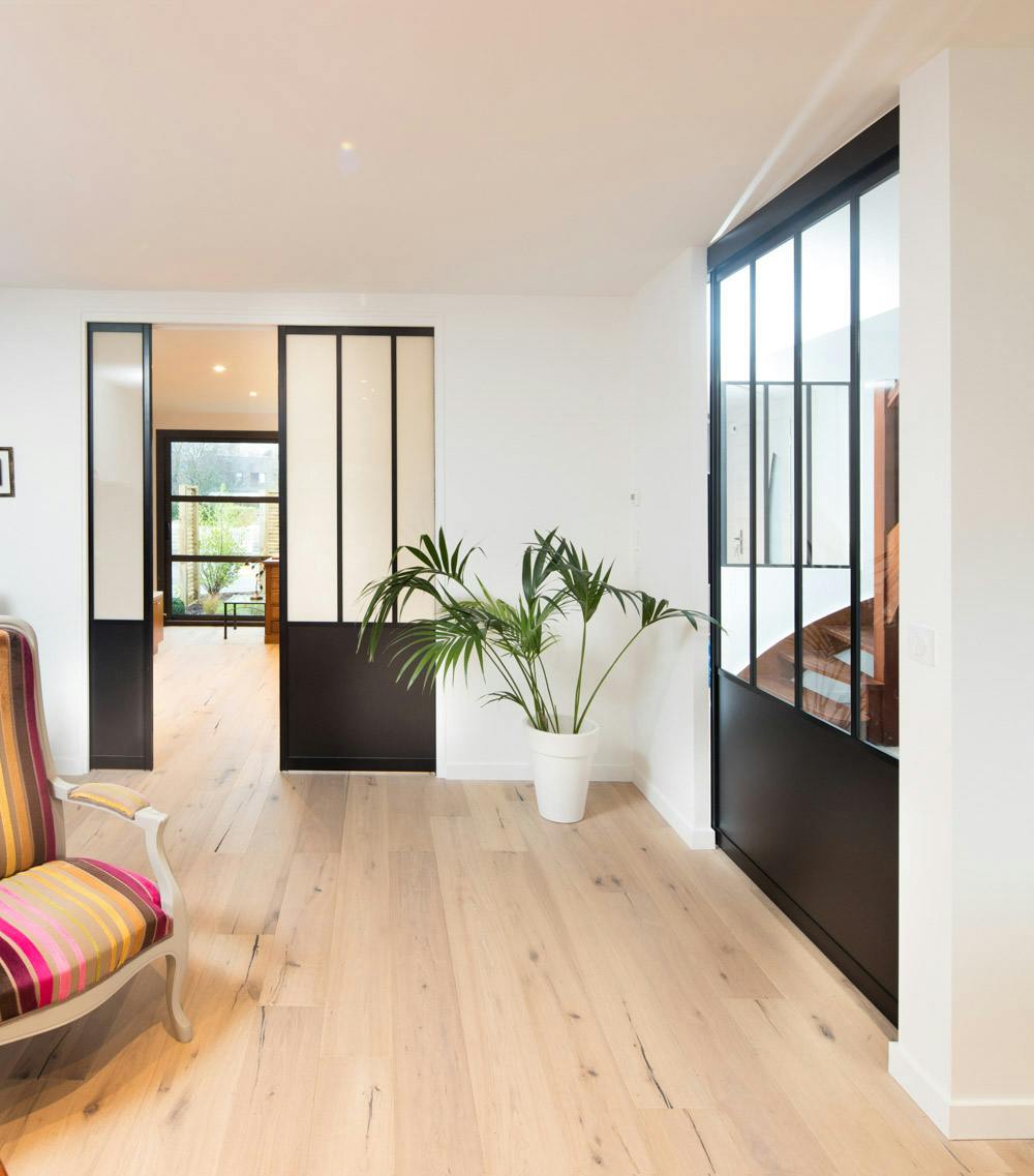 La verrière est parfaite pour séparer des espaces tout en conservant une luminosité optimale. Contrairement aux murs pleins, elle crée une transition douce entre les pièces, idéale pour des espaces tels que le salon, la cuisine ou le bureau.