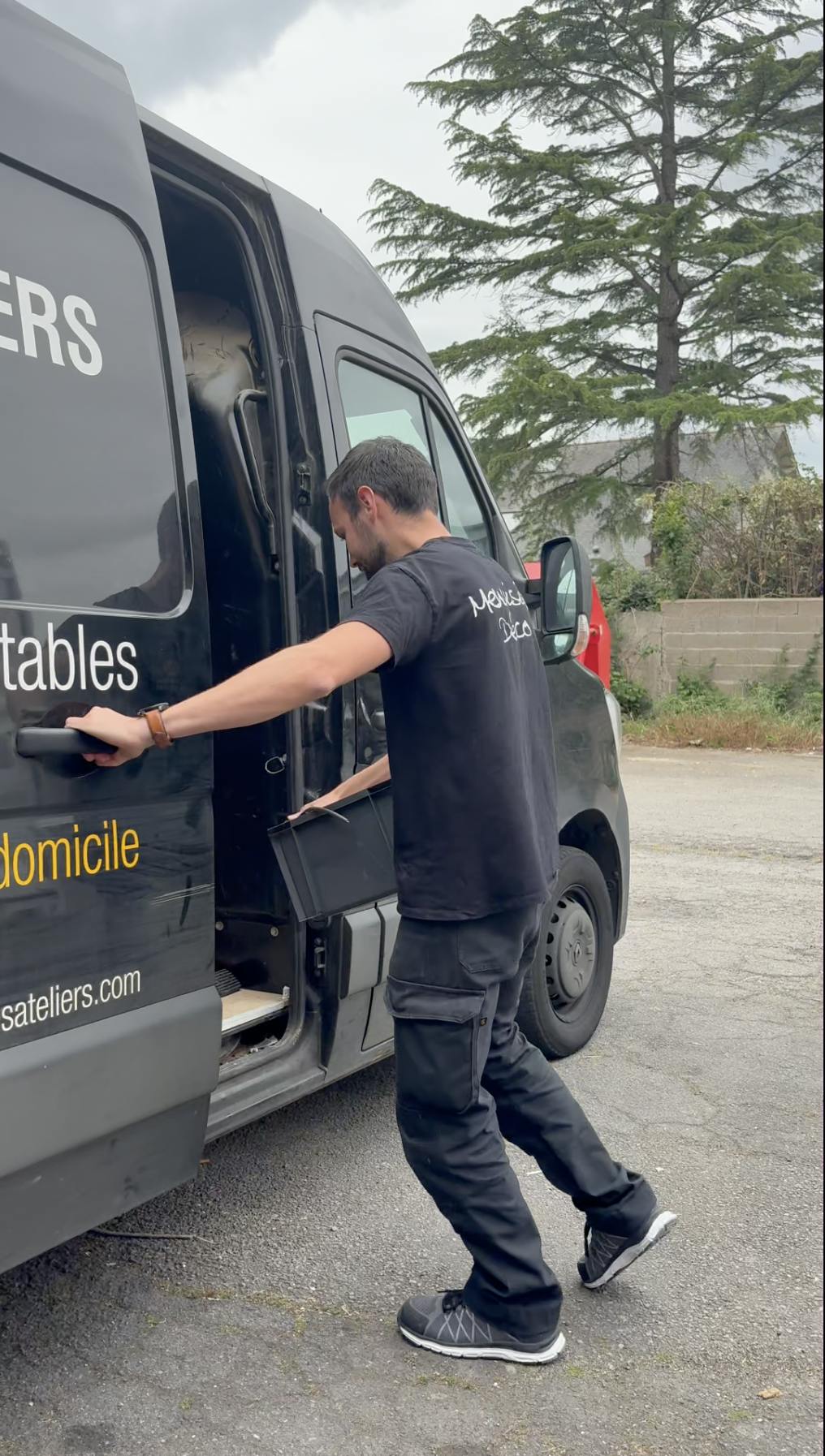 La pose se fait rarement seul. « On est toujours en binôme : un menuisier et soit un deuxième menuisier pour la manutention, soit un apprenti », précise-t-il. C’est cette dynamique d’équipe, où chacun apporte ses compétences et son regard, qui garantit la qualité des aménagements réalisés chez nos clients.