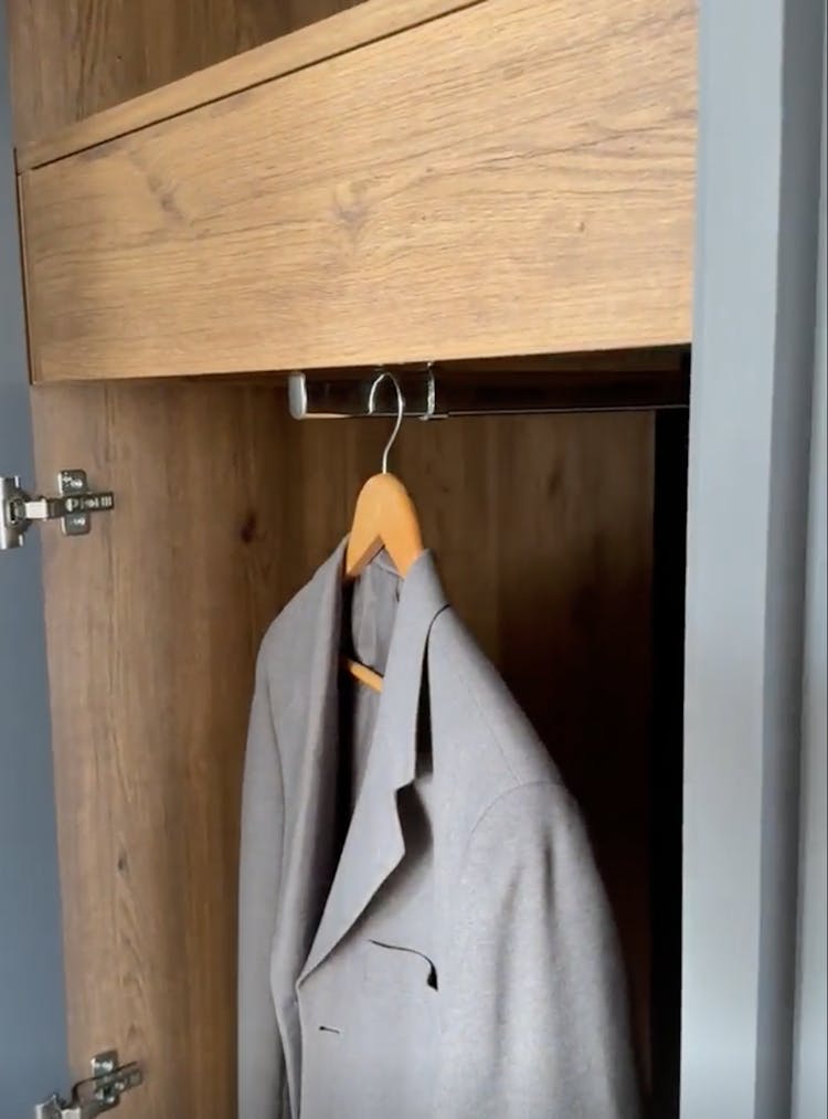 - Tiroir à l’anglaise faisant office de penderie