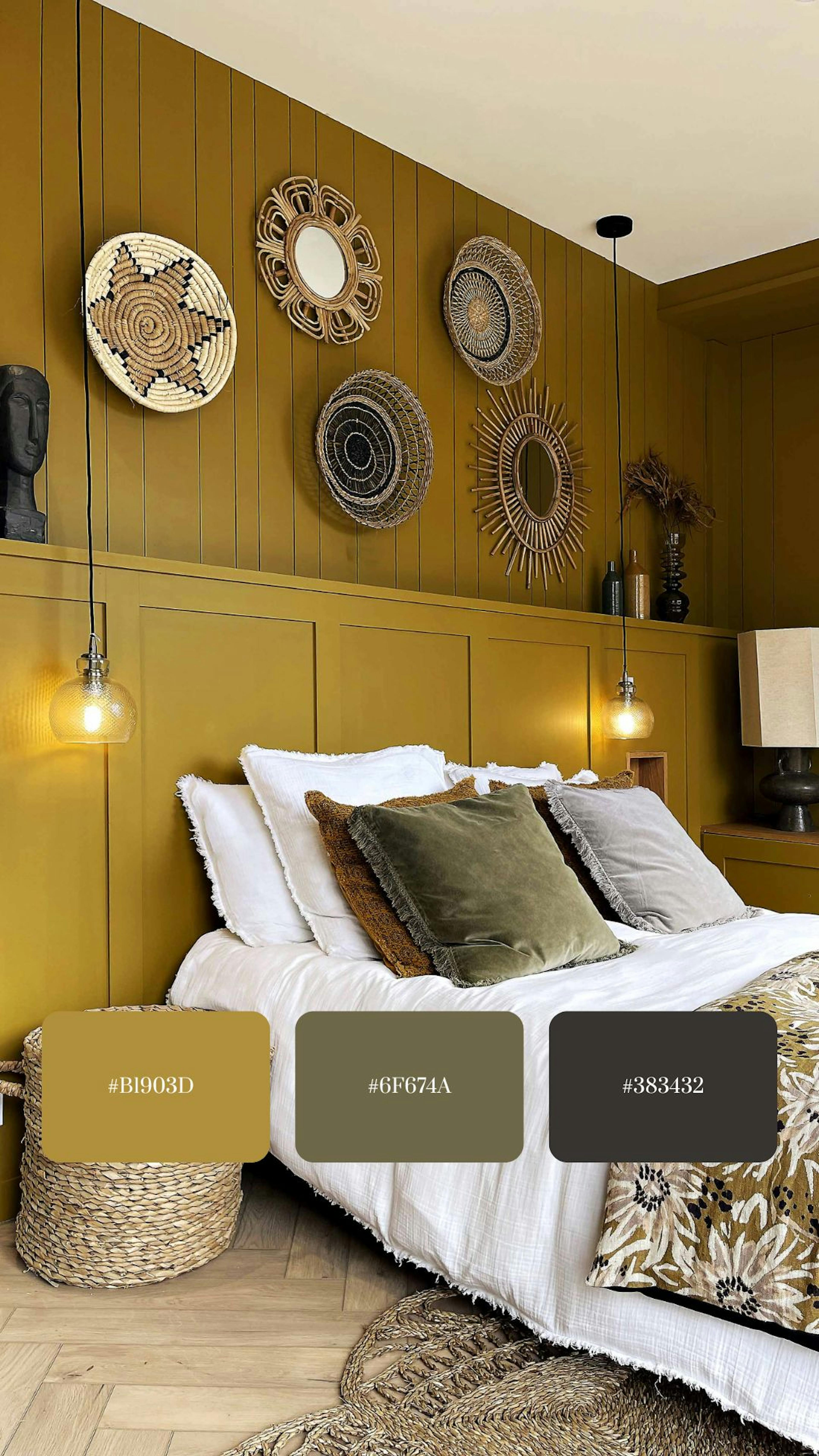 - Les jaunes moutarde et ocres, parfaits pour dynamiser un espace sans l’éblouir.