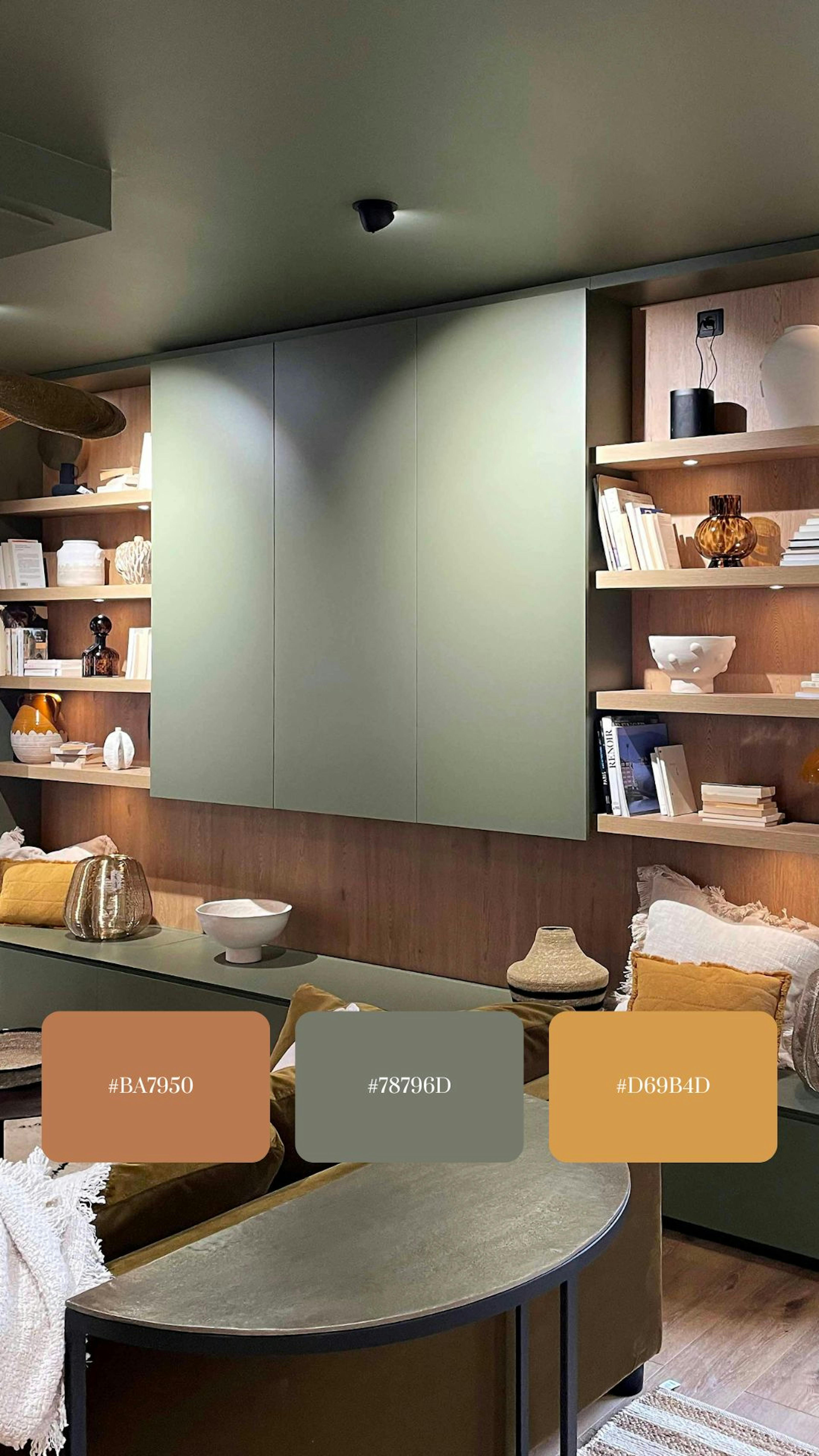 - Les verts doux et kaki, très présents, synonymes de nature et d’équilibre.
