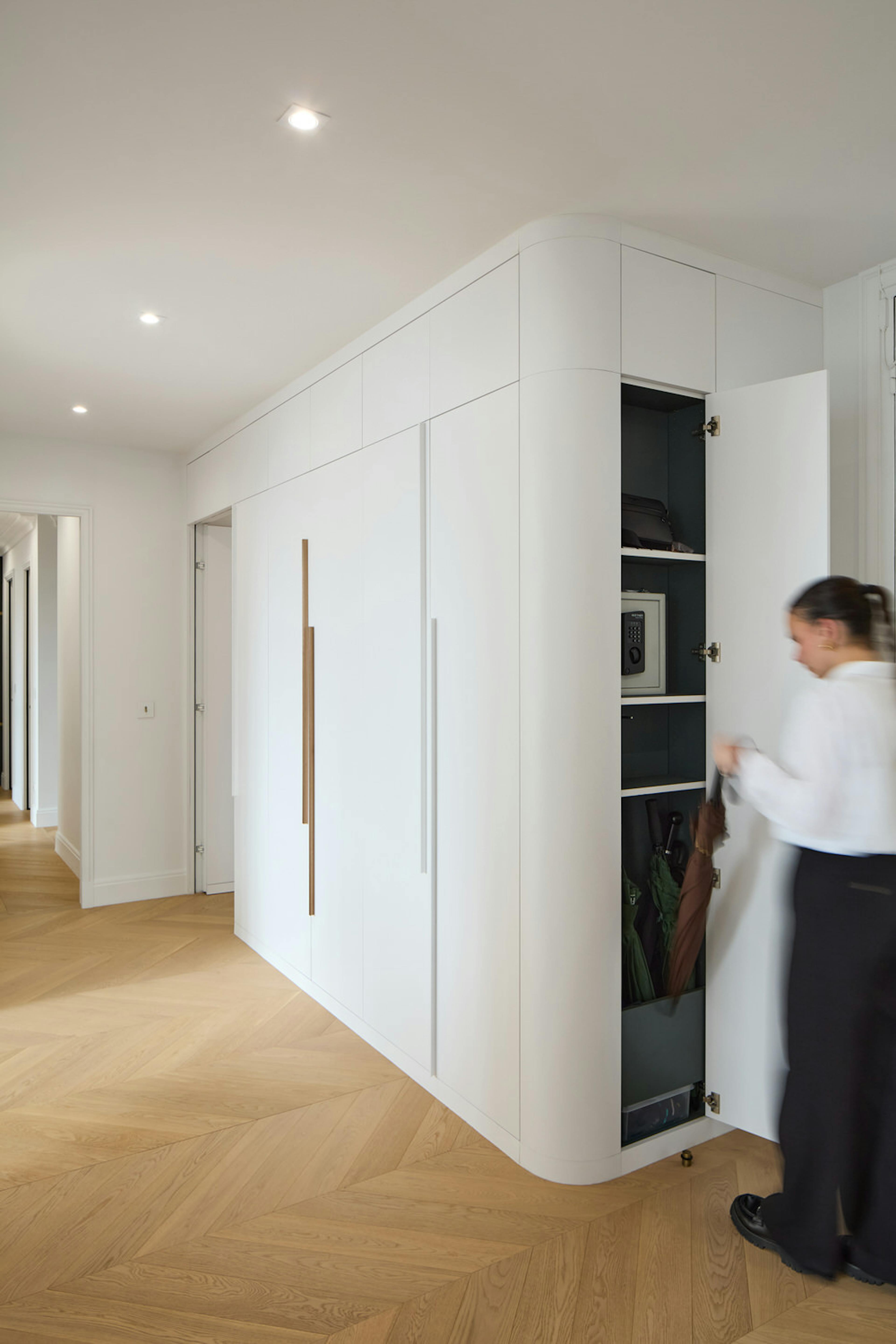 Placards d'entrée blancs avec poignées tasseaux et cintrage