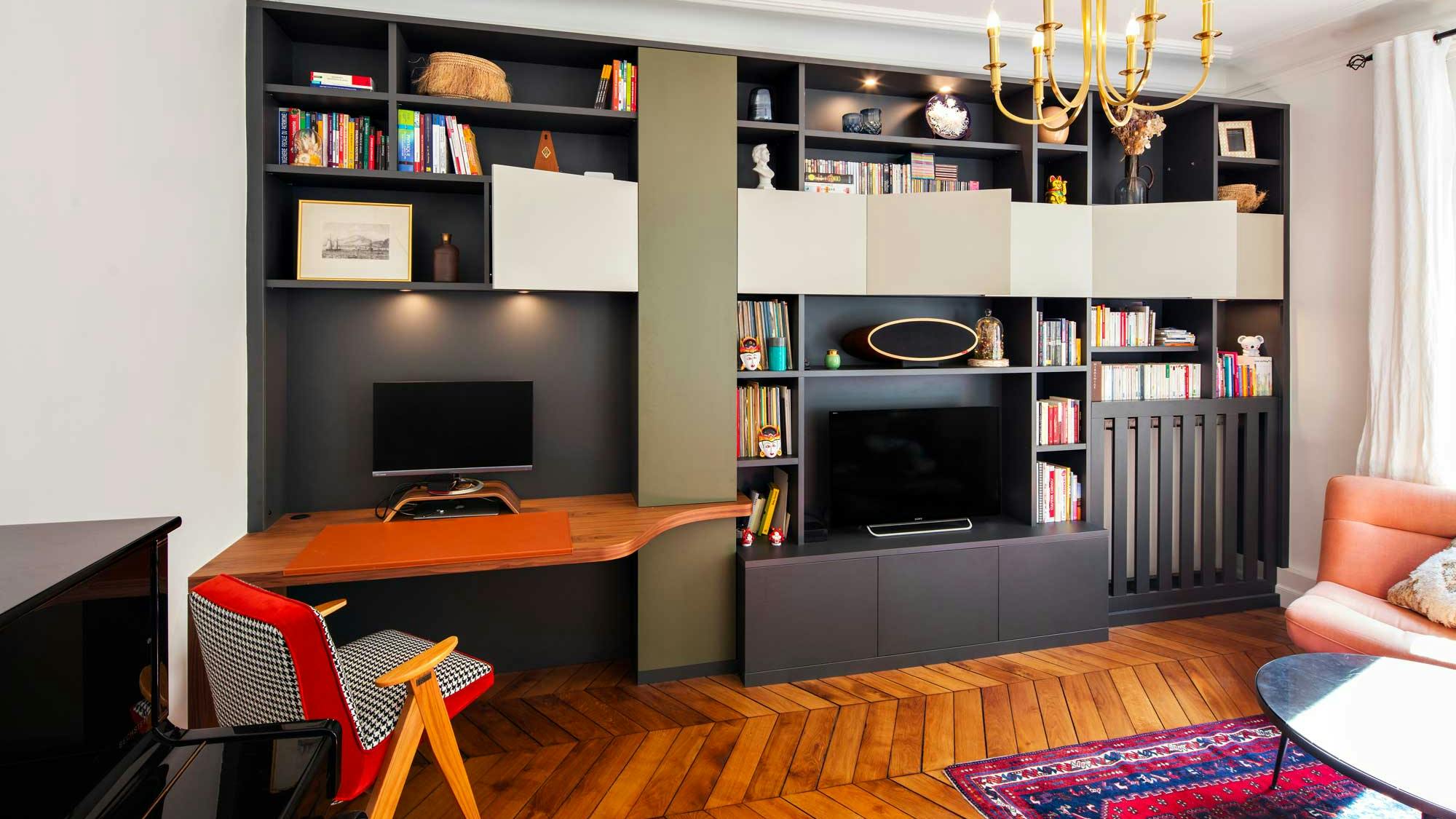Découvrez nos solutions de bureau sur-mesure pour intégrer un espace de travail dans votre salon.