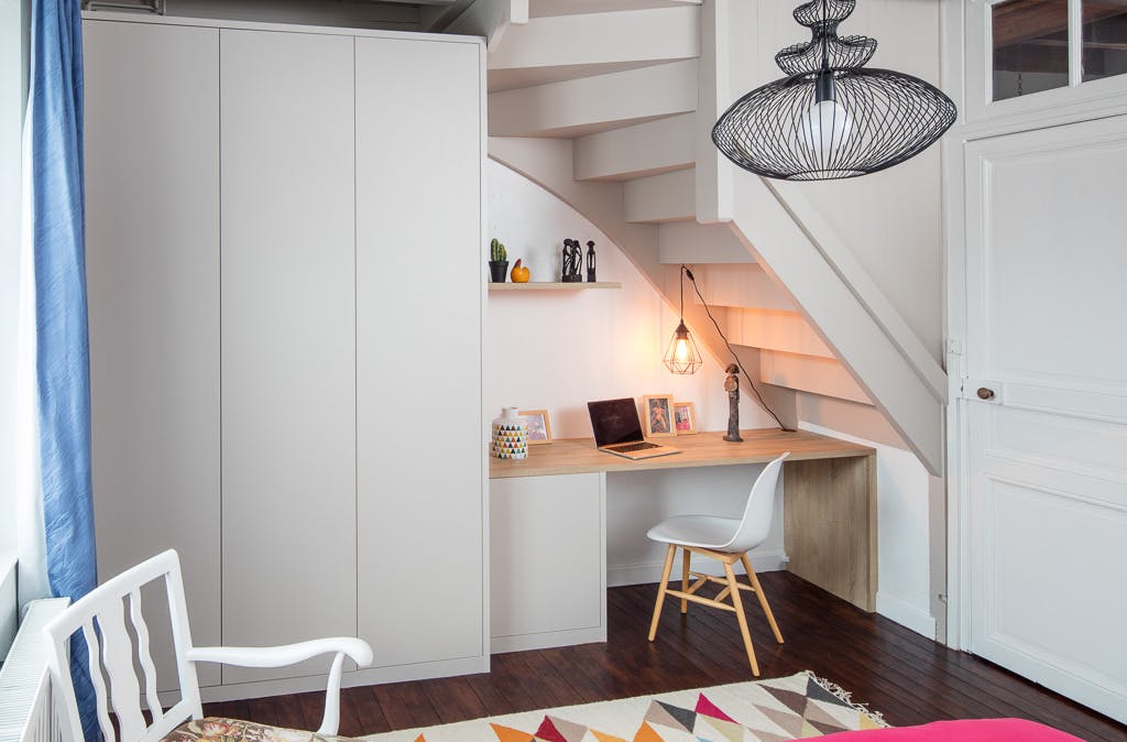 Un espace sous-escalier peut tout à fait accueillir un bureau compact et fonctionnel. Nos architectes conçoivent des meubles intégrant des rangements discrets et des passe-câbles pour un espace organisé.