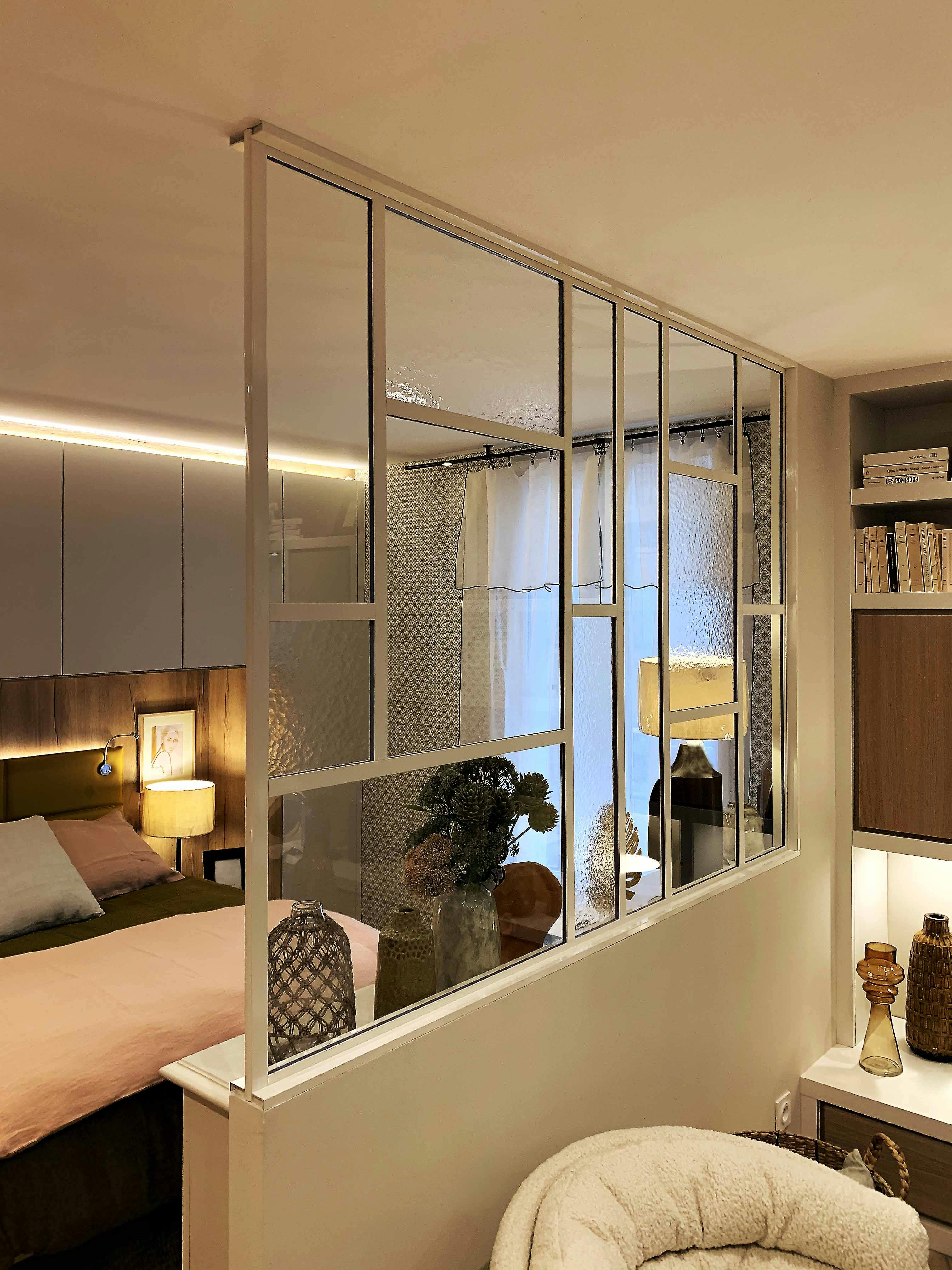 - Ajouter une touche d’élégance industrielle ou contemporaine : les structures en acier noir façon verrière d’atelier s’intègrent aussi bien dans un décor industriel que contemporain. Une cloison vitrée peut devenir un véritable élément de décoration, sur mesure, qui donne du caractère à la chambre tout en s’adaptant à vos goûts.