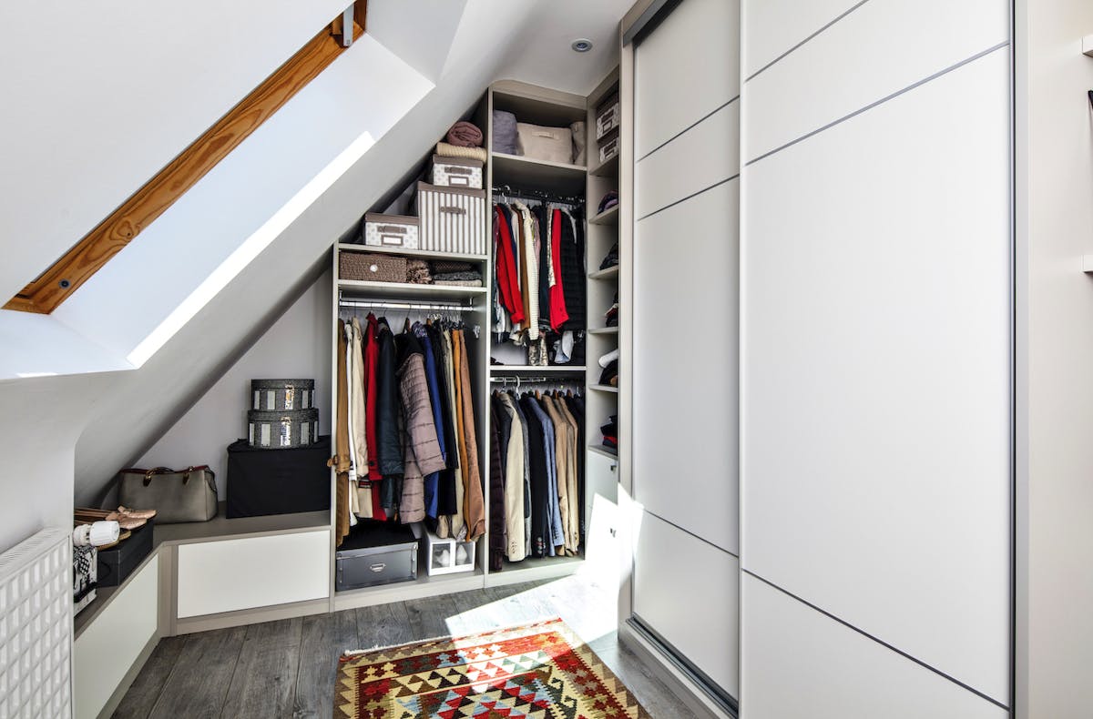 Par nature le rangement sur-mesure s’adapte à tous les espaces. Les multiples compositions, dimensions et formes autorisent une palette infinie de combinaisons : aménagement sous escaliers, rangements sous combles, dressing toute hauteur… Promesses d’un réel gain de place et d’une décoration personnalisée.