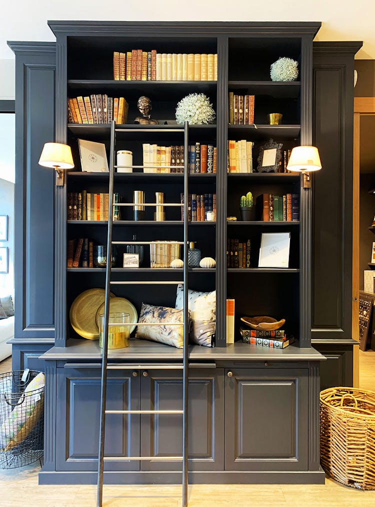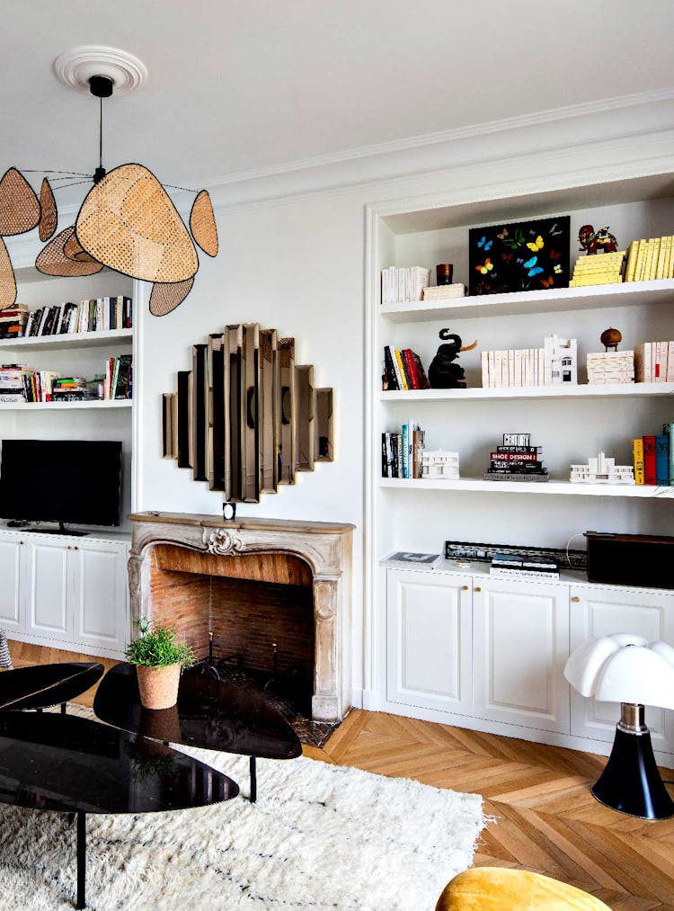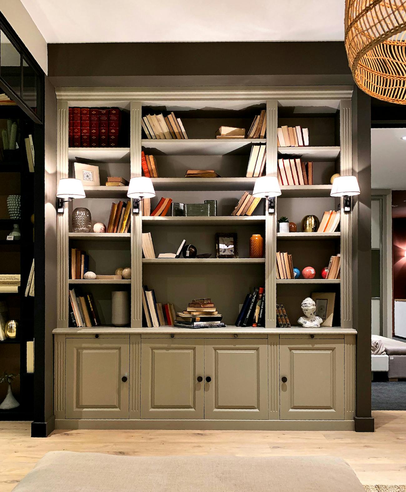 - Les bibliothèques : véritables pièces maîtresses d’un salon, elles peuvent être dotées de pilastres, de corniches et de niches ouvertes ou fermées pour un mélange d’authenticité et de modernité.