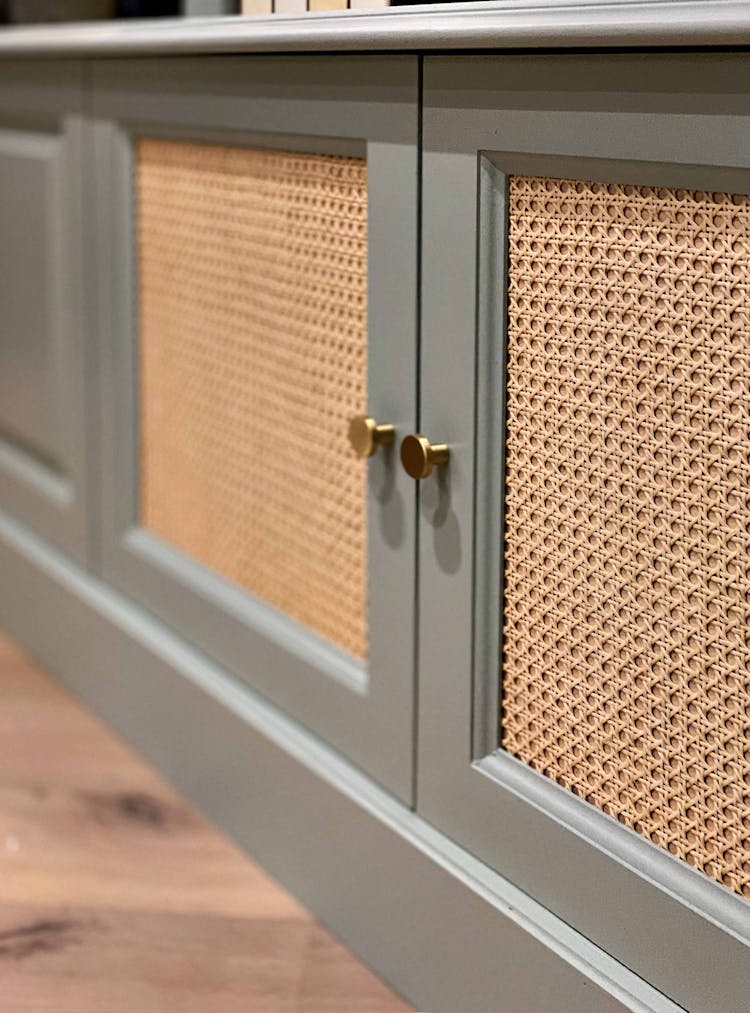 Les portes avec cannage, avec son aspect naturel et léger, s’intègre parfaitement aux créations sur-mesure. Qu’il s’agisse d’un placard ou d’une bibliothèque, ce matériau confère une esthétique vintage et chaleureuse, idéale pour un intérieur classique.