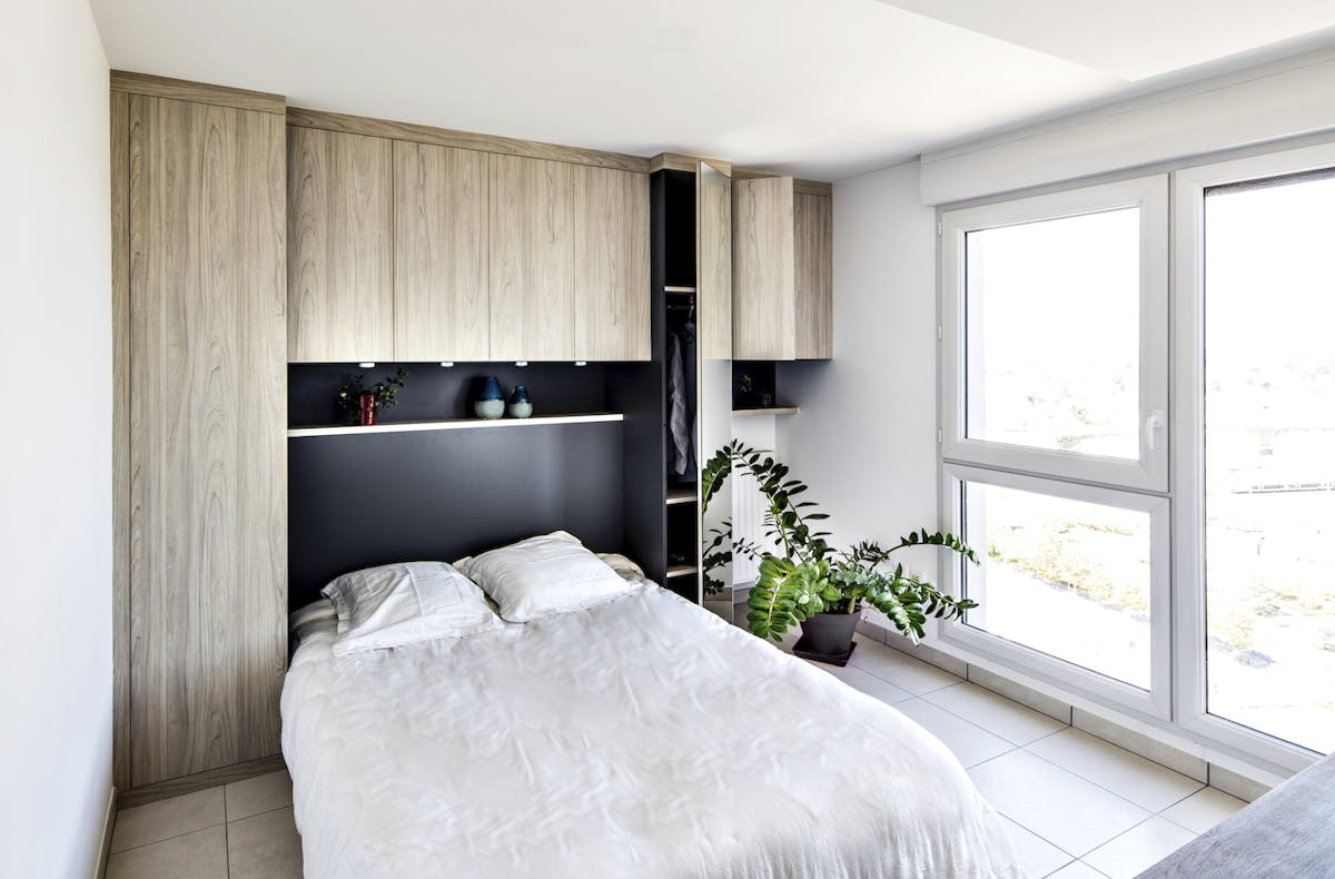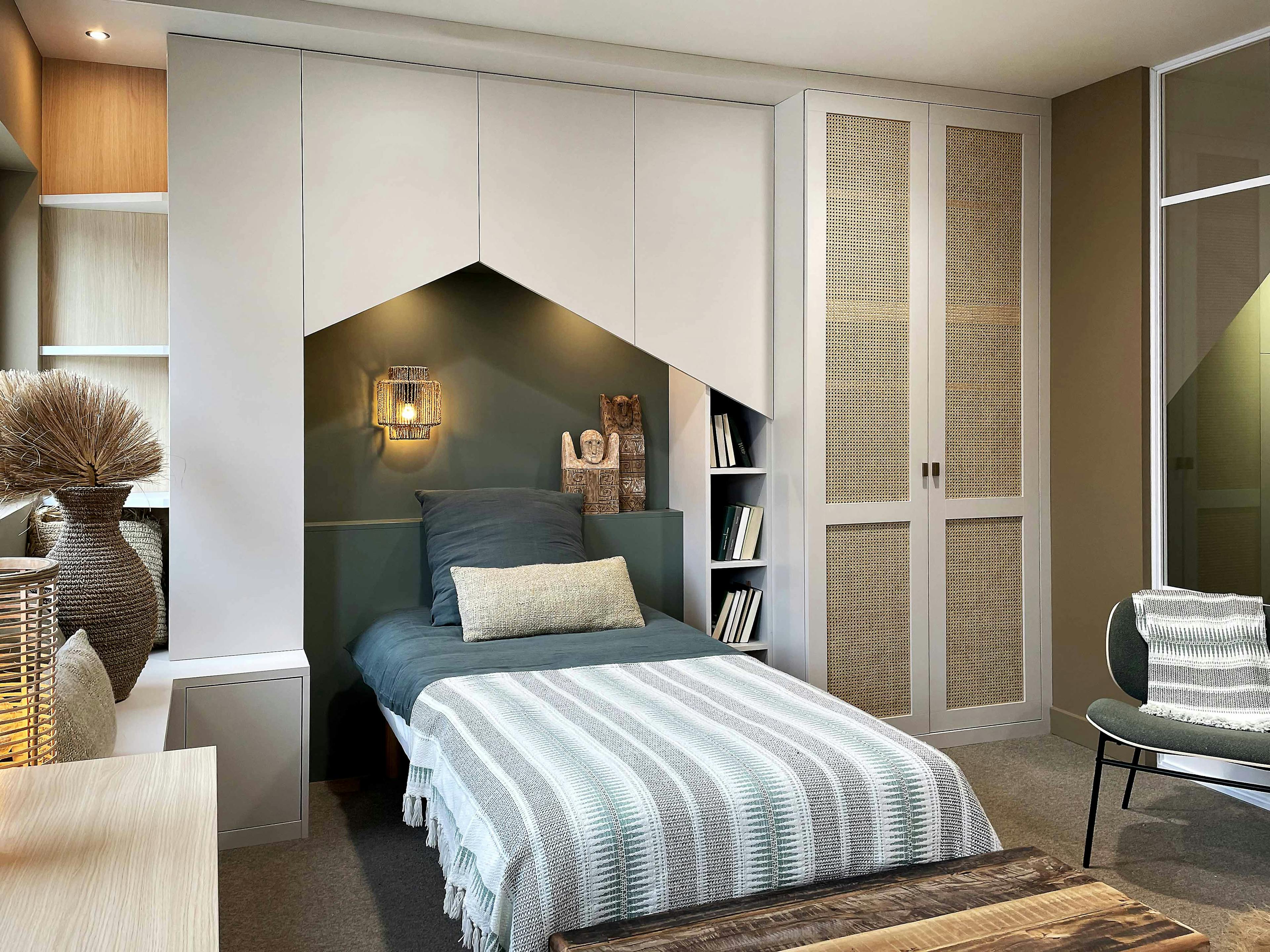 Plutôt que de multiplier les meubles dans la pièce (commode, armoire, bibliothèque), tout est rassemblé autour de l’espace nuit. Cela dégage la pièce, la rend plus fluide et plus agréable à vivre. Ce type d’aménagement est particulièrement apprécié dans les appartements citadins, les studios, les chambres d’enfants ou d’adolescents, mais aussi dans les résidences secondaires où l’on cherche à optimiser l’espace sans sacrifier le confort.