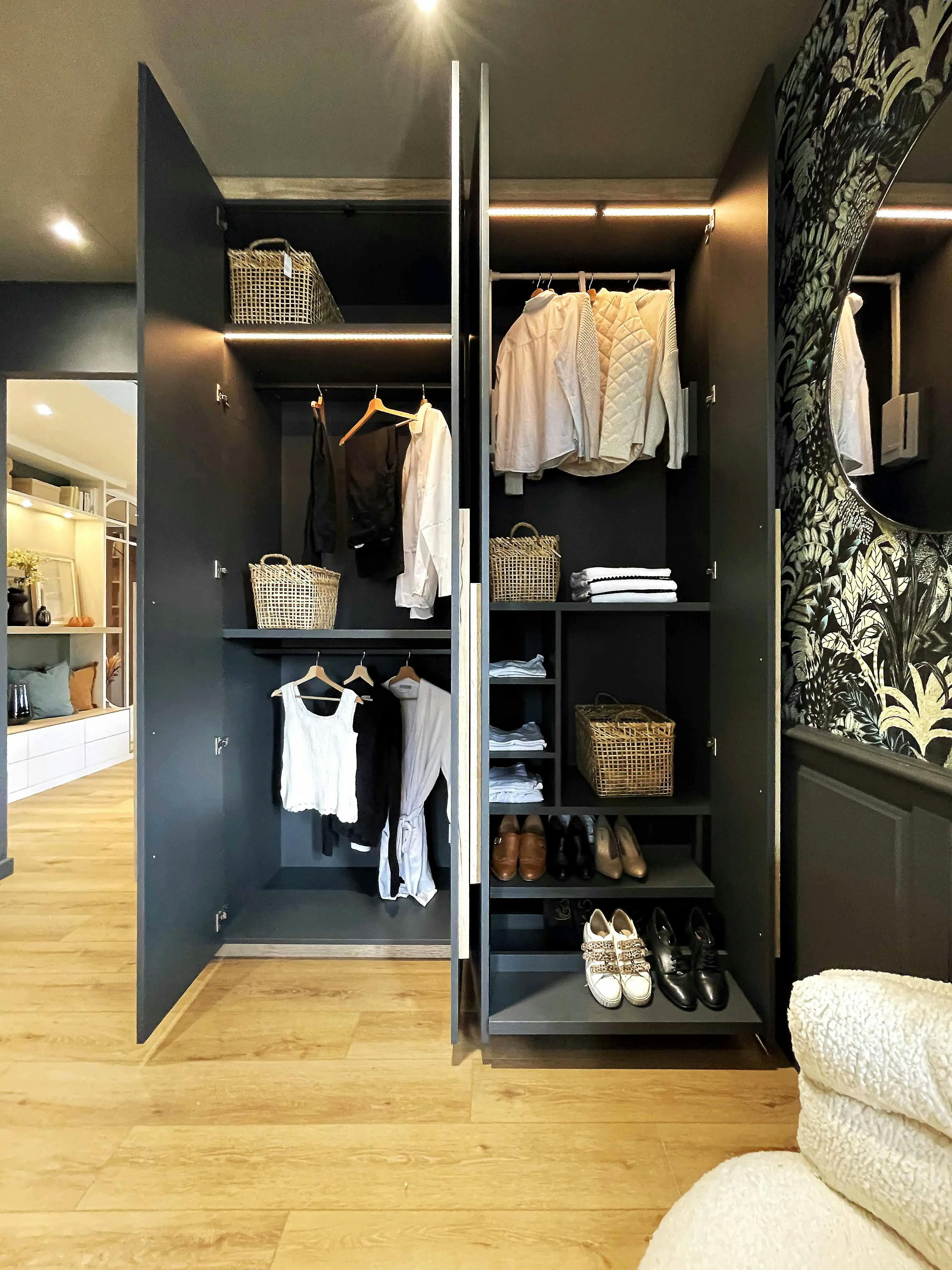 Maximisez votre rangement avec un placard sur-mesure, pensé pour s’adapter à votre intérieur et à vos besoins. Que ce soit pour vos vêtements, chaussures, accessoires ou objets du quotidien, nous créons des solutions élégantes et fonctionnelles, parfaitement intégrées à votre espace.