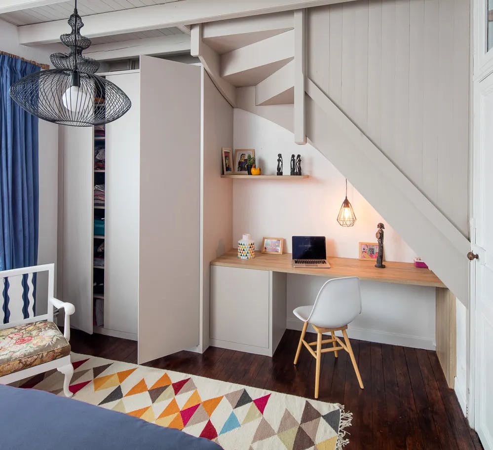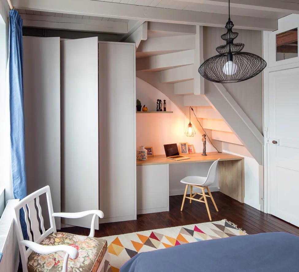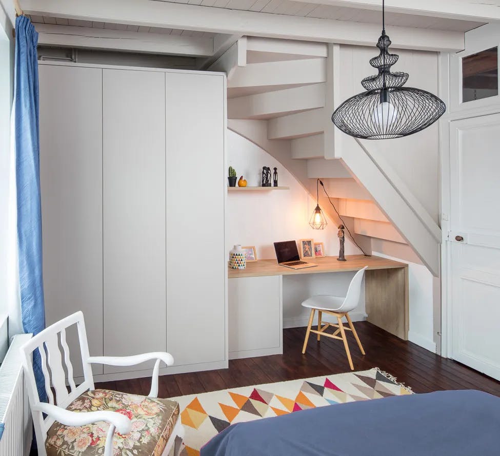 Absolument ! Un bureau sous pente est une excellente façon d’exploiter un espace souvent négligé. Il offre un coin travail ergonomique et discret, parfait pour un usage quotidien ou occasionnel. Grâce à une conception sur mesure, le bureau peut inclure des rangements supplémentaires, comme des tiroirs ou des étagères, pour maximiser sa fonctionnalité.