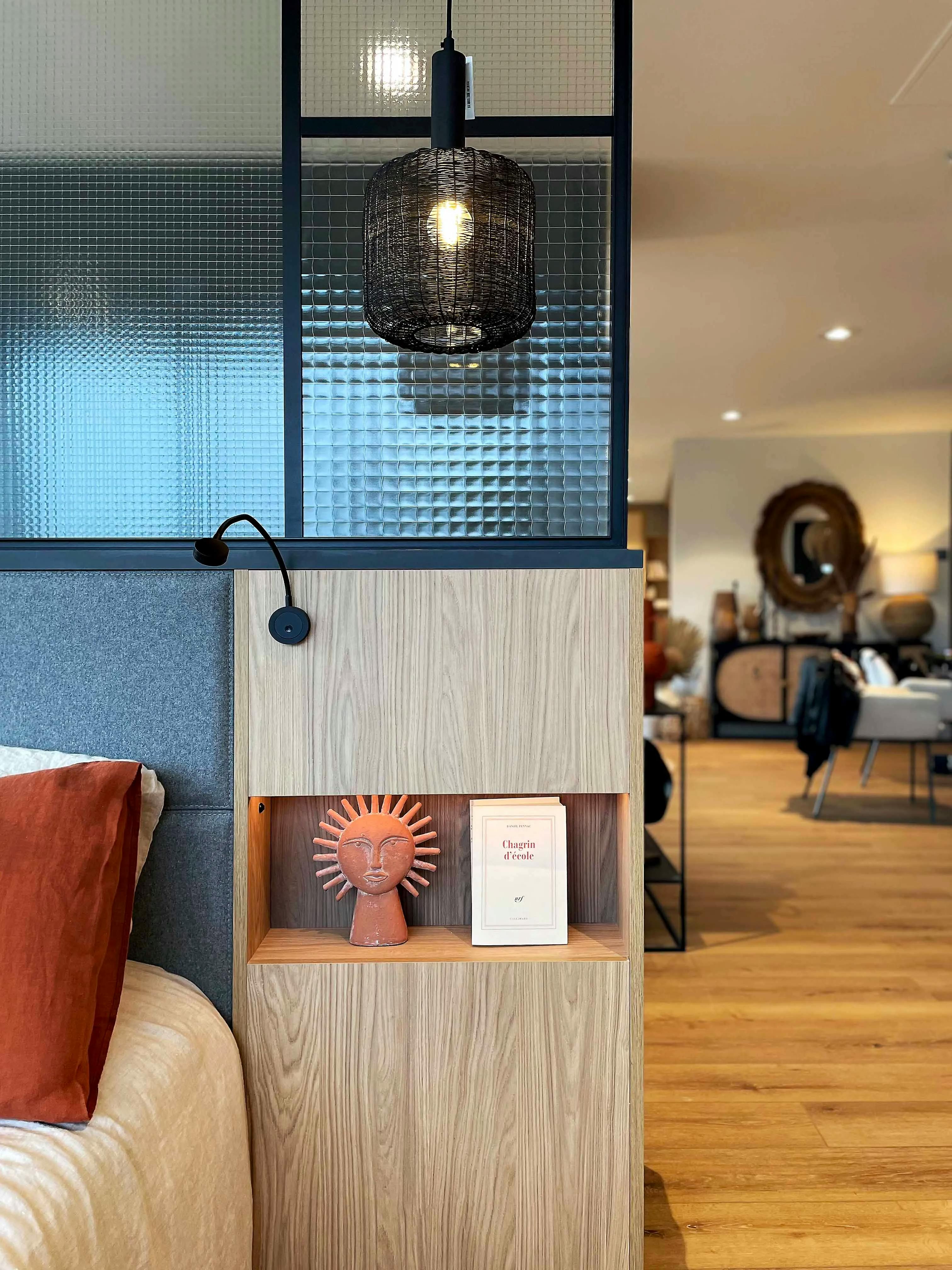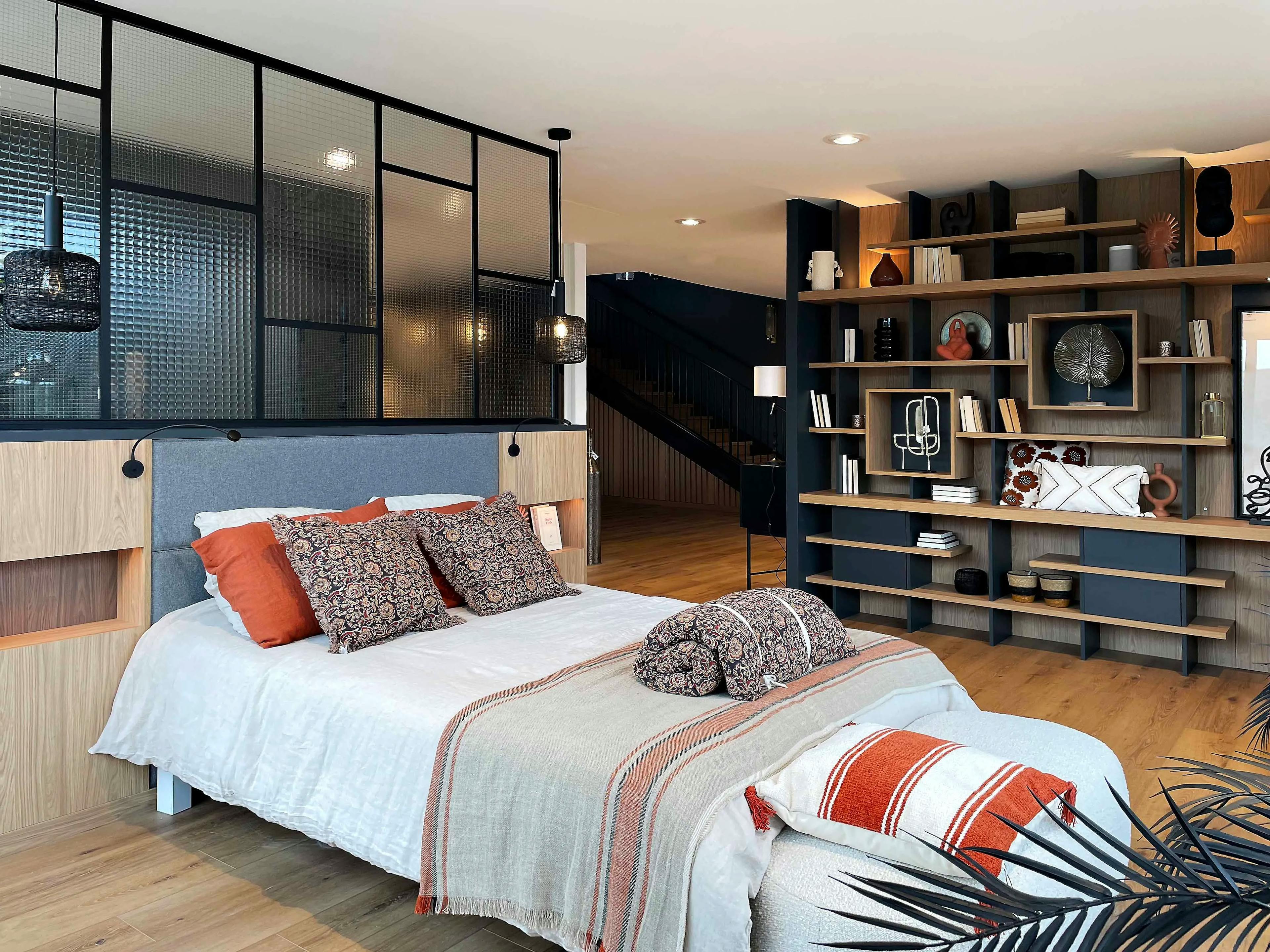 Grâce au sur-mesure, cette verrière a été conçue pour s'adapter parfaitement aux dimensions de la chambre, tout en offrant un aspect moderne qui se marie parfaitement avec le reste du mobilier. La structure métallique fine permet de délimiter l’espace tout en favorisant la circulation de la lumière naturelle. C’est une solution design et fonctionnelle qui permet de structurer l’espace tout en conservant une sensation d’ouverture.