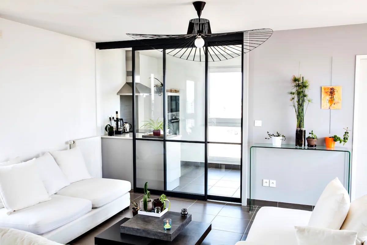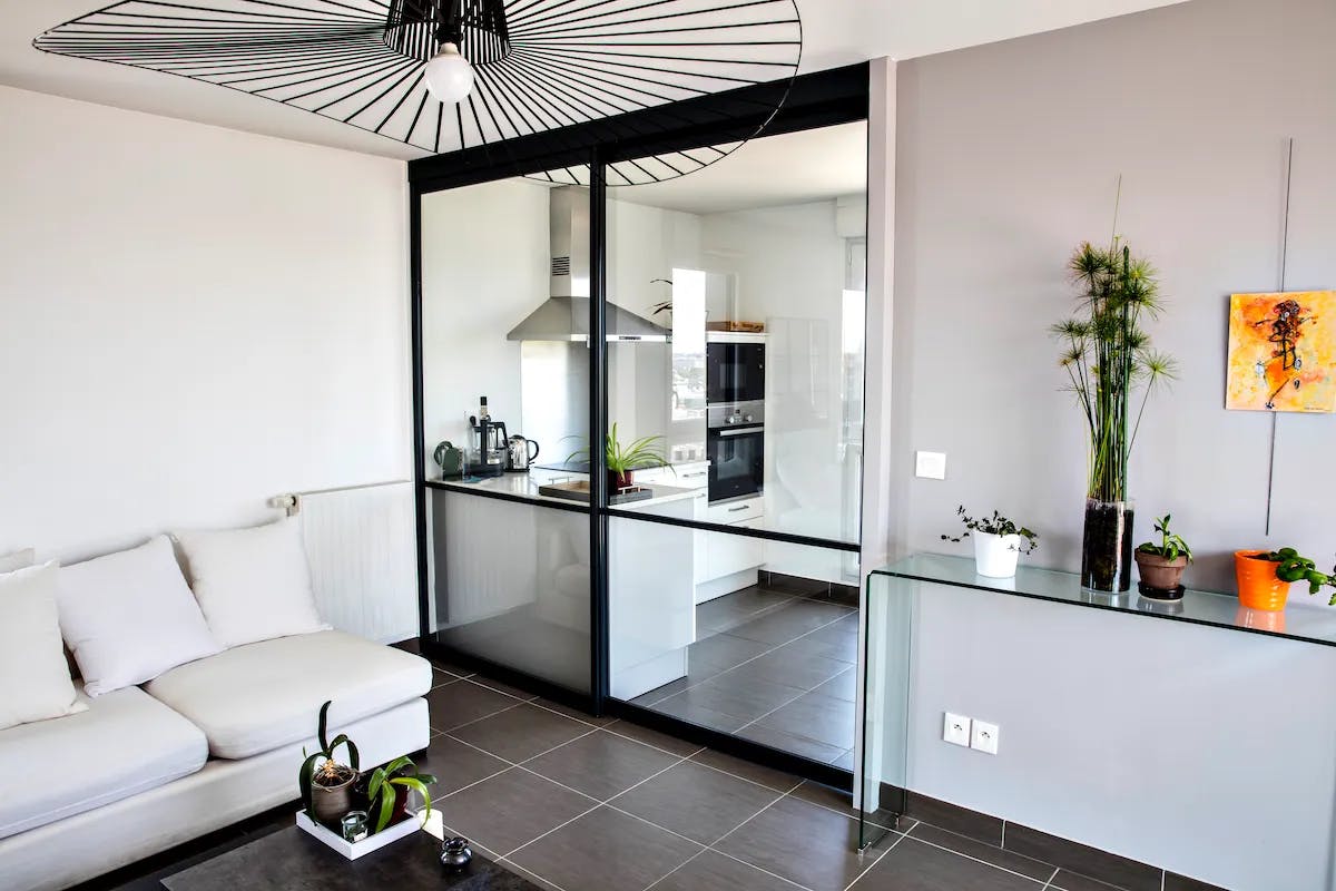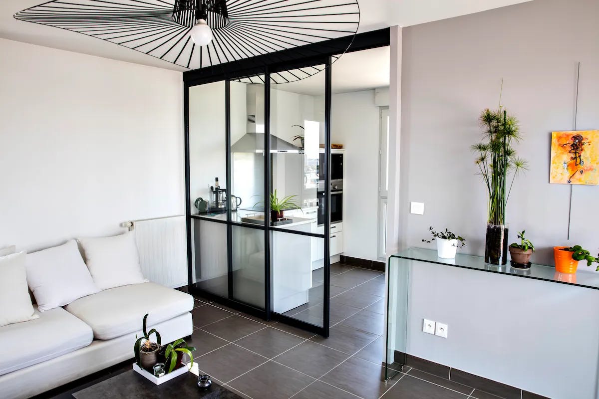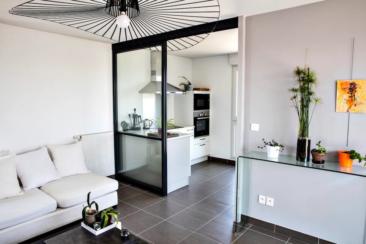 Le principal défi était de séparer les pièces tout en préservant l’impression d’ouverture et de lumière. Le sur-mesure était indispensable pour s’adapter aux dimensions et aux contraintes spécifiques de l’espace tout en répondant aux besoins esthétiques de Marie-Laure. La solution trouvée : une porte coulissante en verre noir, alliant transparence et design contemporain, pour une séparation élégante, discrète et fonctionnelle.