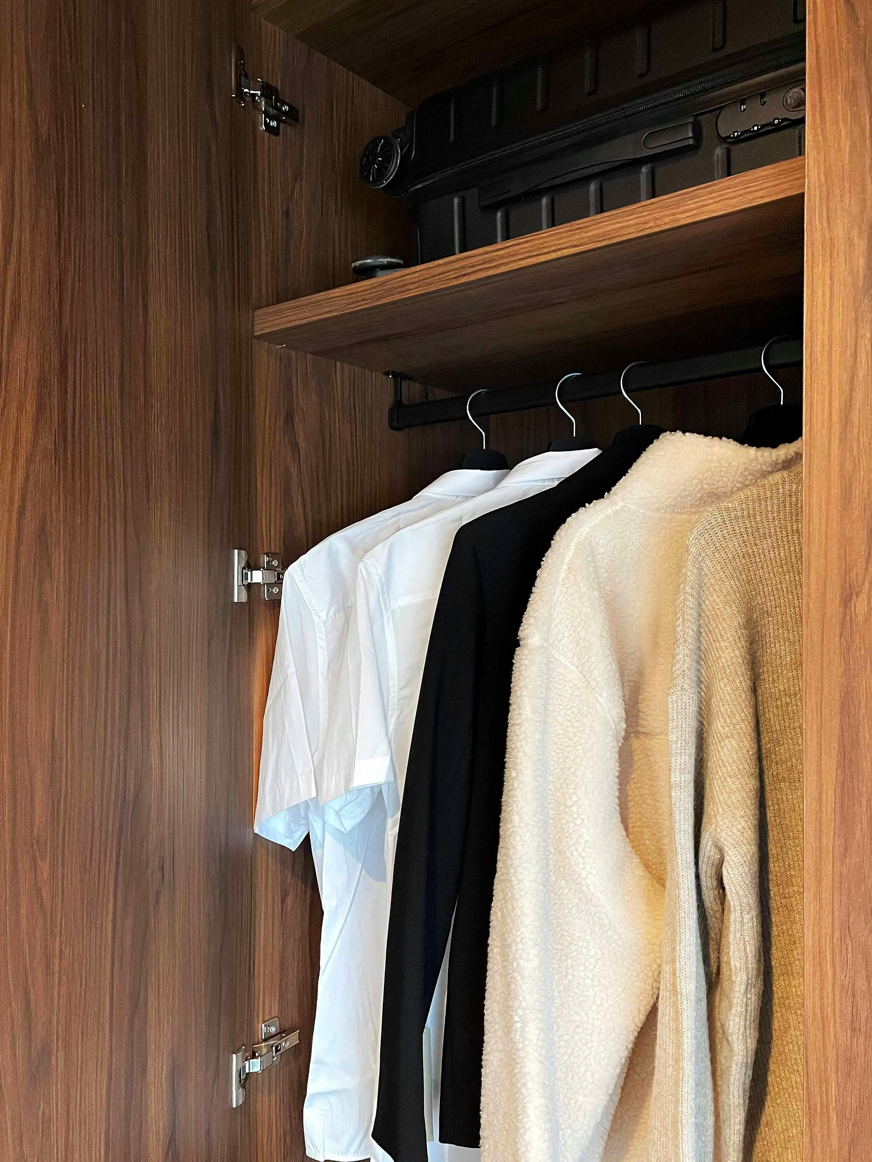 L'un des principaux défis était d'intégrer un grand volume de rangement dans un espace réduit, tout en tenant compte de l'angle de l'entrée. Le sur-mesure était nécessaire pour que les portes s'intègrent parfaitement aux dimensions de la pièce et à la configuration particulière de l’espace. Une attention particulière devait être portée à l'harmonie des matériaux et à la fonctionnalité des portes, notamment avec l'utilisation de portes coulissantes ou battantes selon les besoins d'accès.