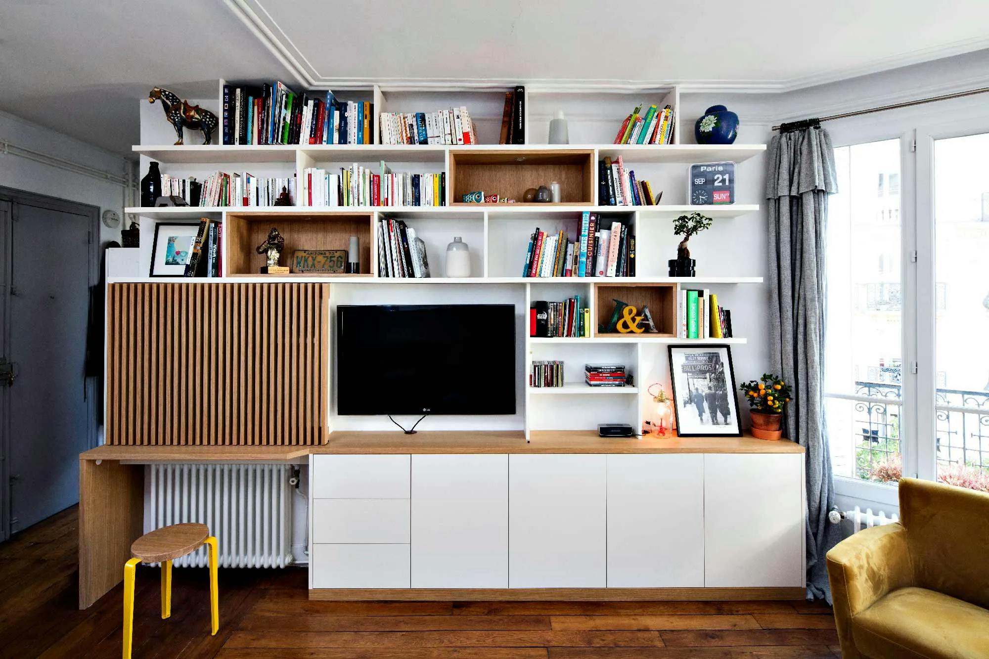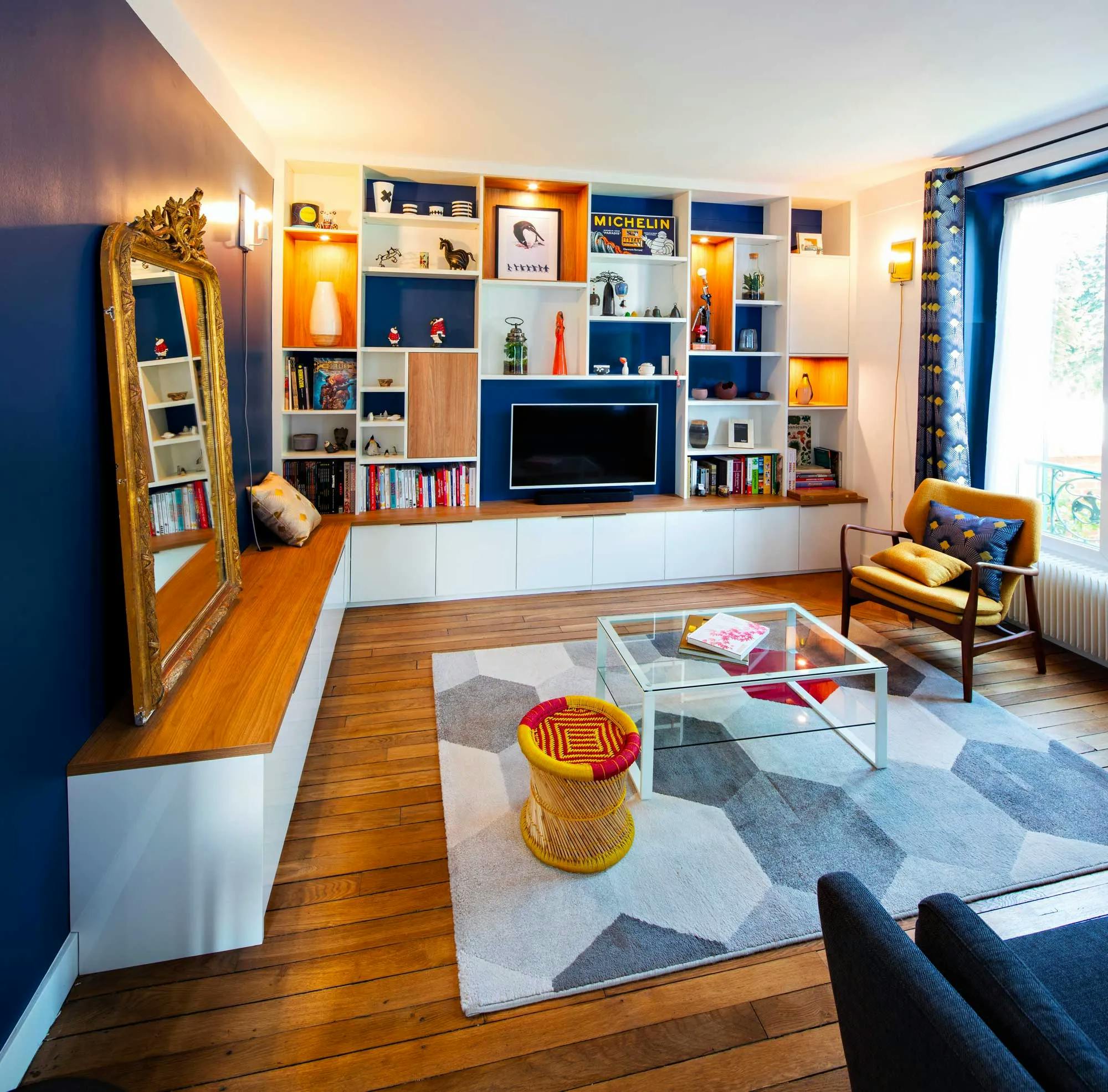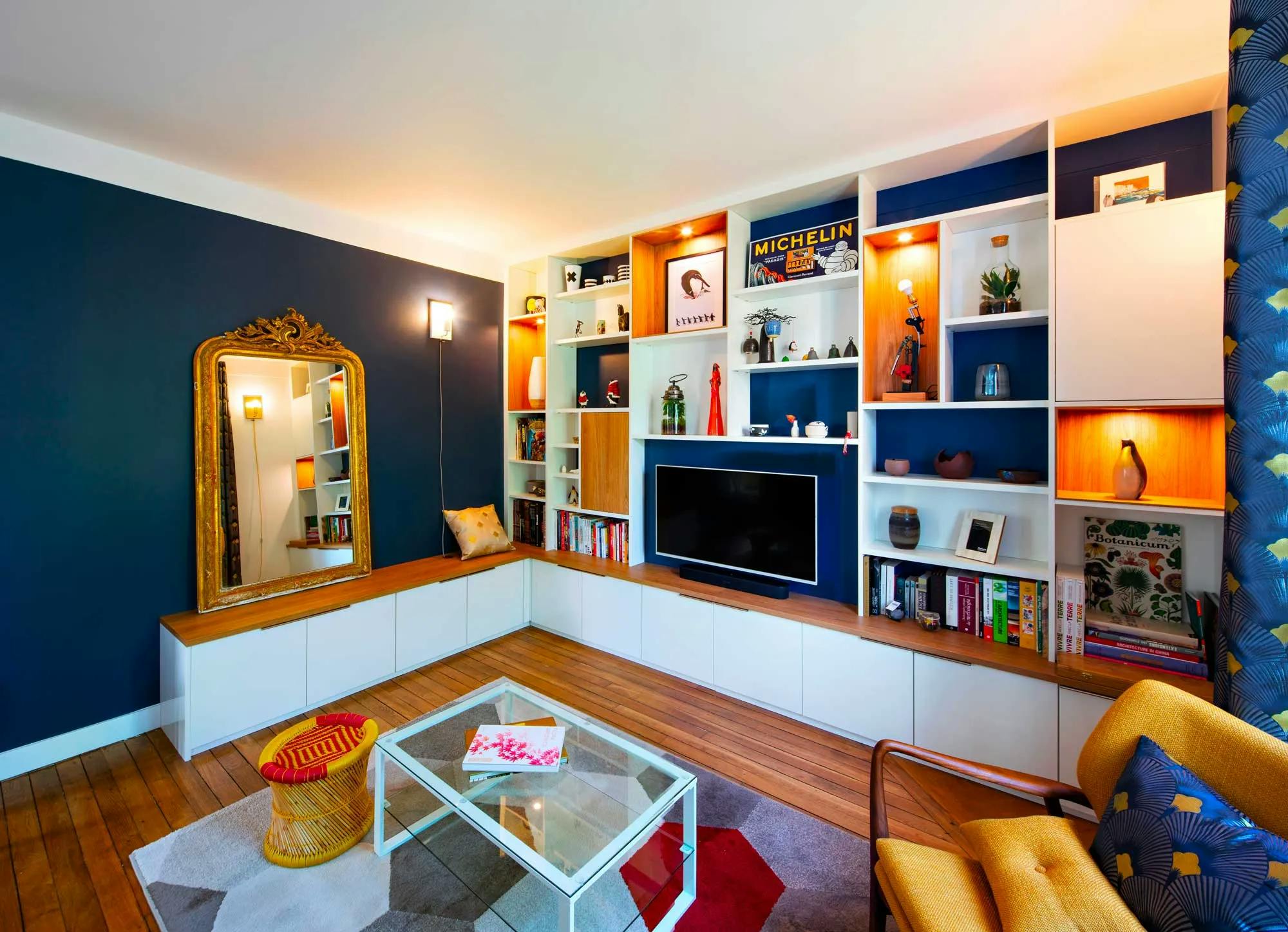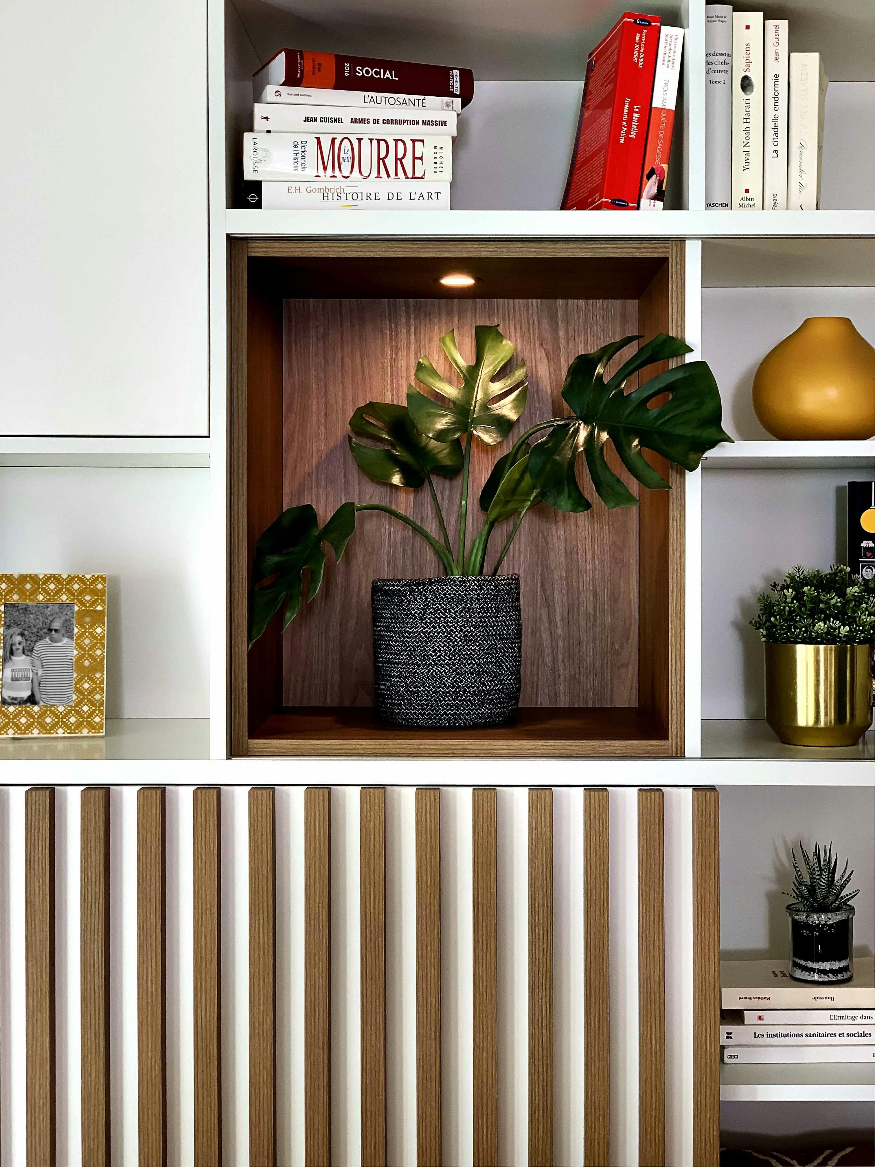 Un aménagement de meuble TV sur mesure va plus loin qu’un simple achat de meuble : c’est un projet d’agencement dans lequel vous allez réfléchir à l’organisation de votre pièce en fonction de vos habitudes, contraintes et envies. Plusieurs paramètres sont pris en compte : espace de circulation disponible, éclairage, disposition des prises, orientation du canapé, dimensions de la TV, éléments à ranger…En fonction de ces paramètres et de vos envies en matière de décoration d’intérieur, vous pourrez faire coïncider esthétique et fonctionnalité avec de nombreuses options de meubles TV : meuble bas, caissons suspendus, ensemble coordonné, bibliothèque complète….Le vrai sur-mesure permet de donner corps à vos envies en collant à votre personnalité.