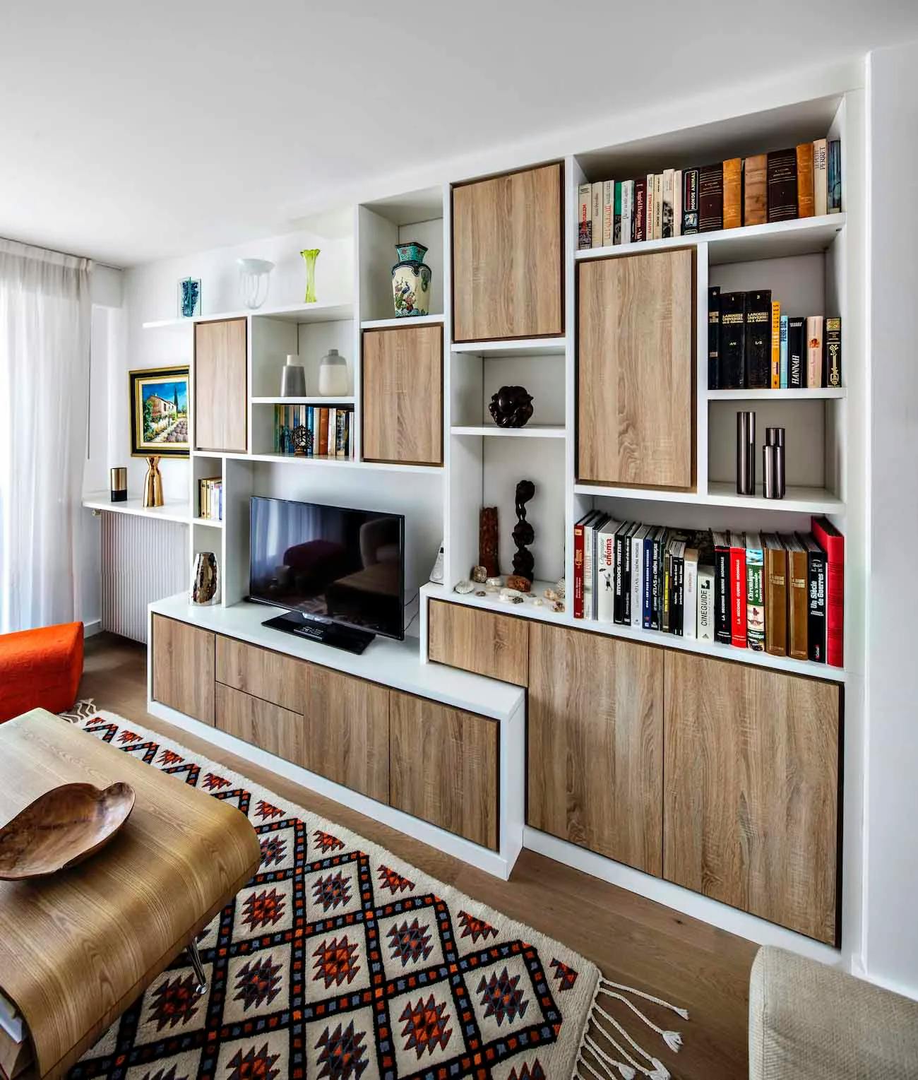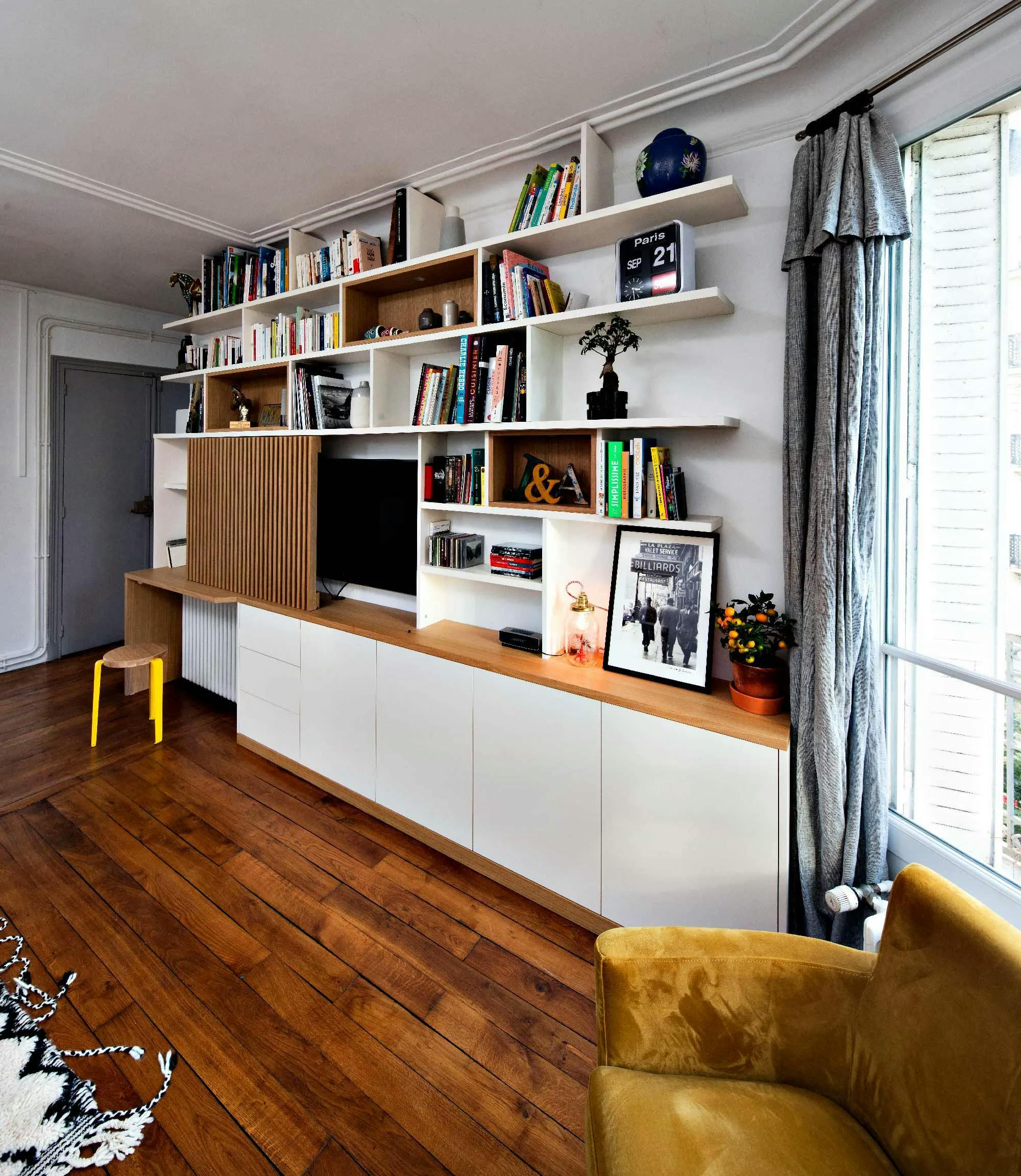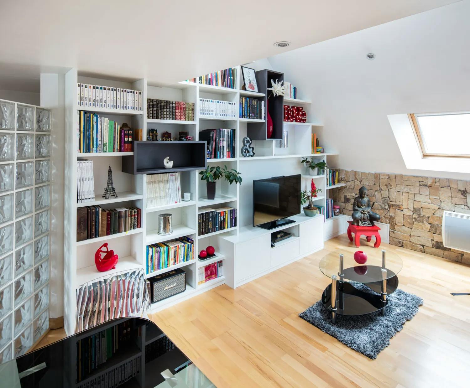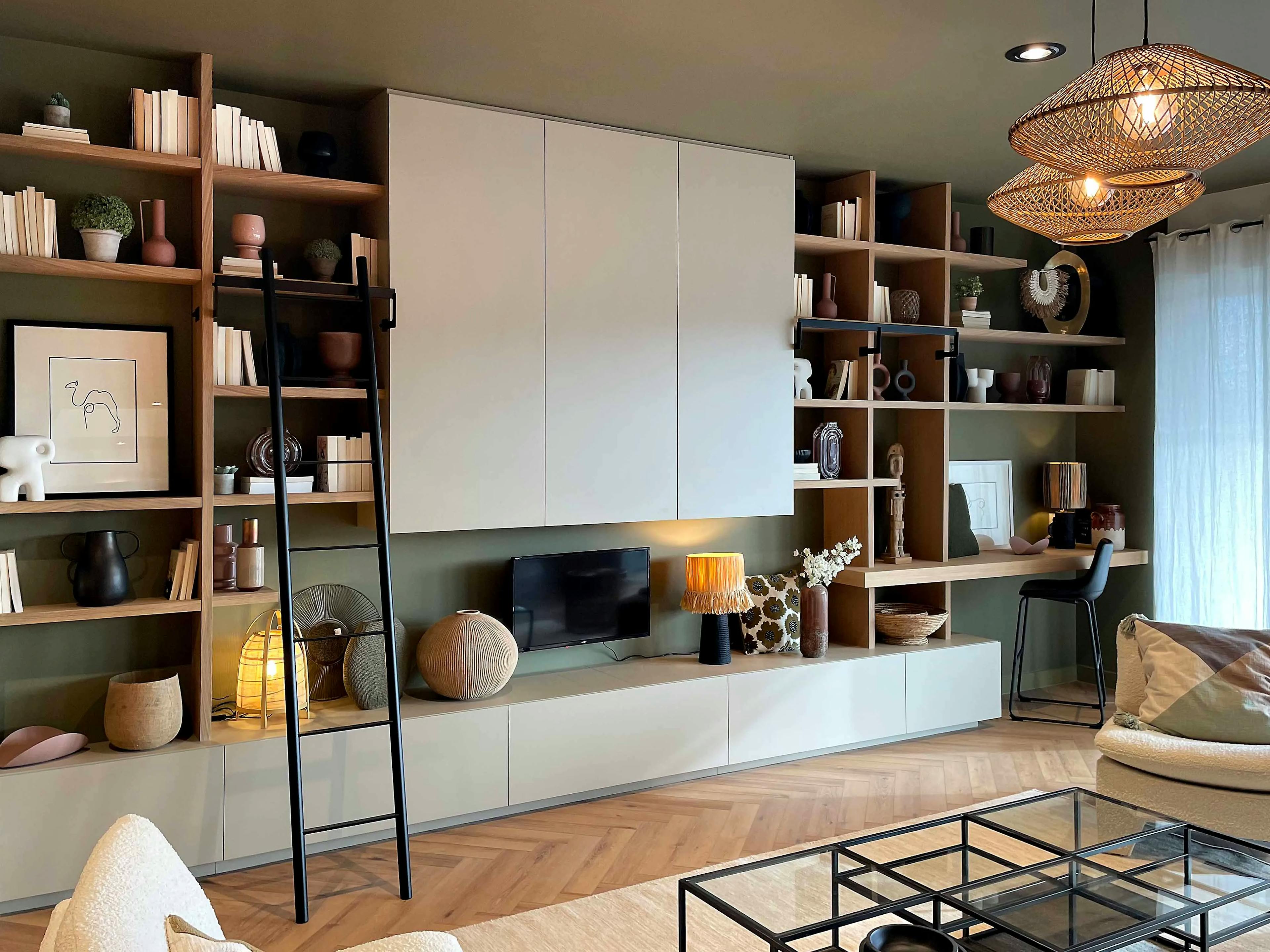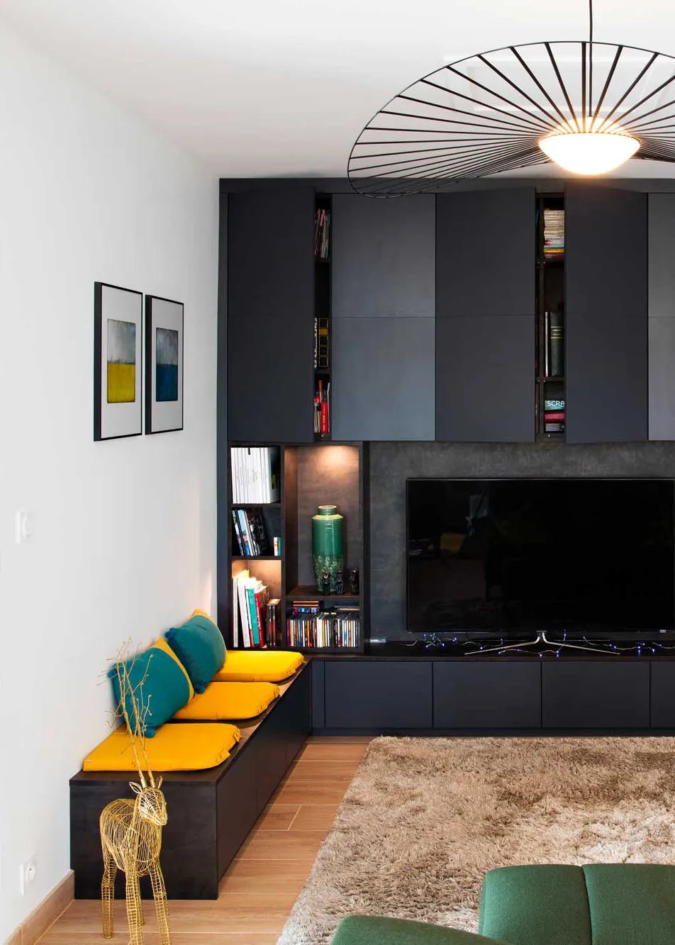 Un aménagement de meuble TV sur mesure va plus loin qu’un simple achat de meuble : c’est un projet d’agencement dans lequel vous allez réfléchir à l’organisation de votre pièce en fonction de vos habitudes, contraintes et envies. Plusieurs paramètres sont pris en compte : espace de circulation disponible, éclairage, disposition des prises, orientation du canapé, dimensions de la TV, éléments à ranger…En fonction de ces paramètres et de vos envies en matière de décoration d’intérieur, vous pourrez faire coïncider esthétique et fonctionnalité avec de nombreuses options de meubles TV : meuble bas, caissons suspendus, ensemble coordonné, bibliothèque complète….Le vrai sur-mesure permet de donner corps à vos envies en collant à votre personnalité.
